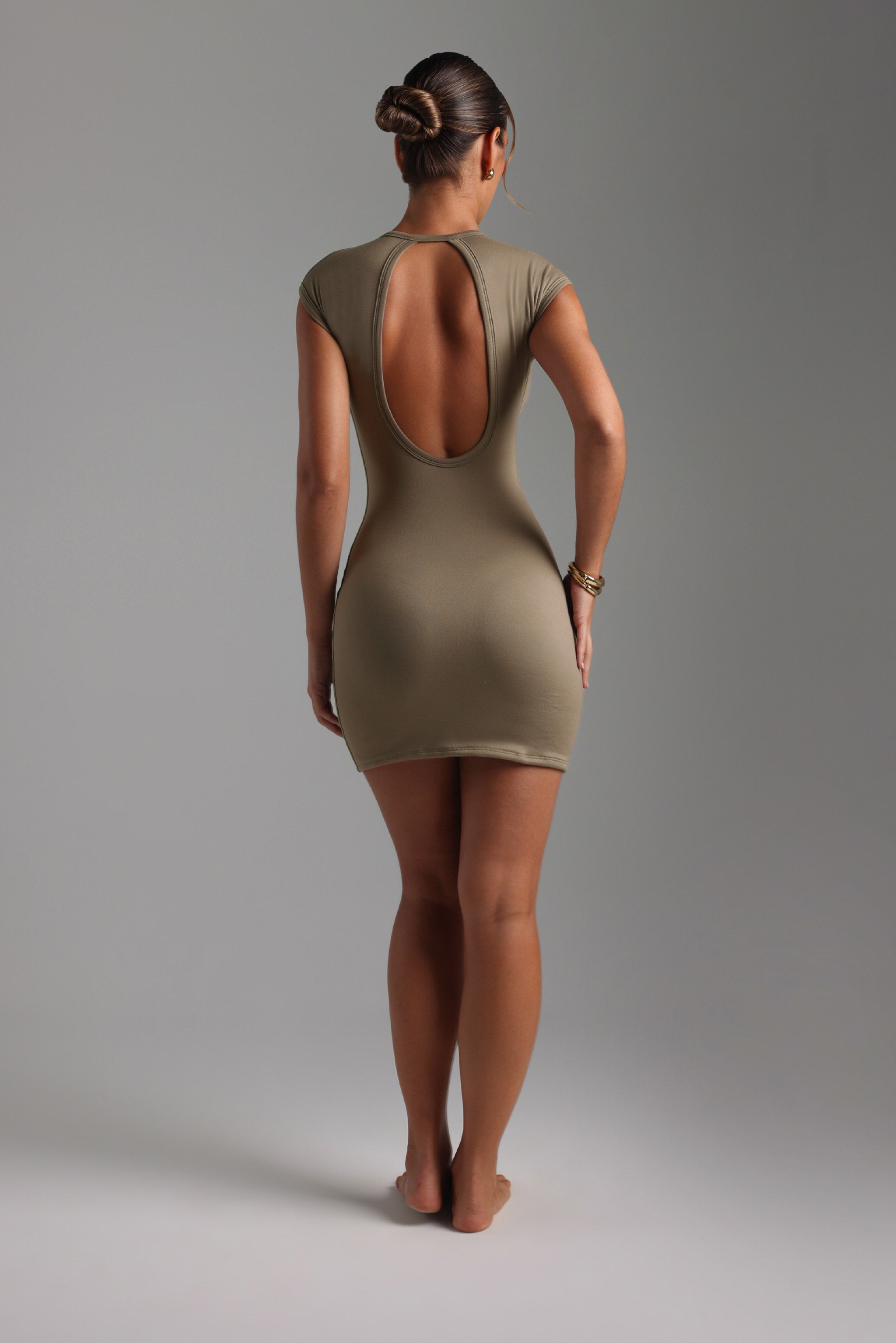 CAP SLEEVE OPEN-BACK MINI DRESS - Latte Taupe CAP SLEEVE OPEN-BACK MINI DRESS