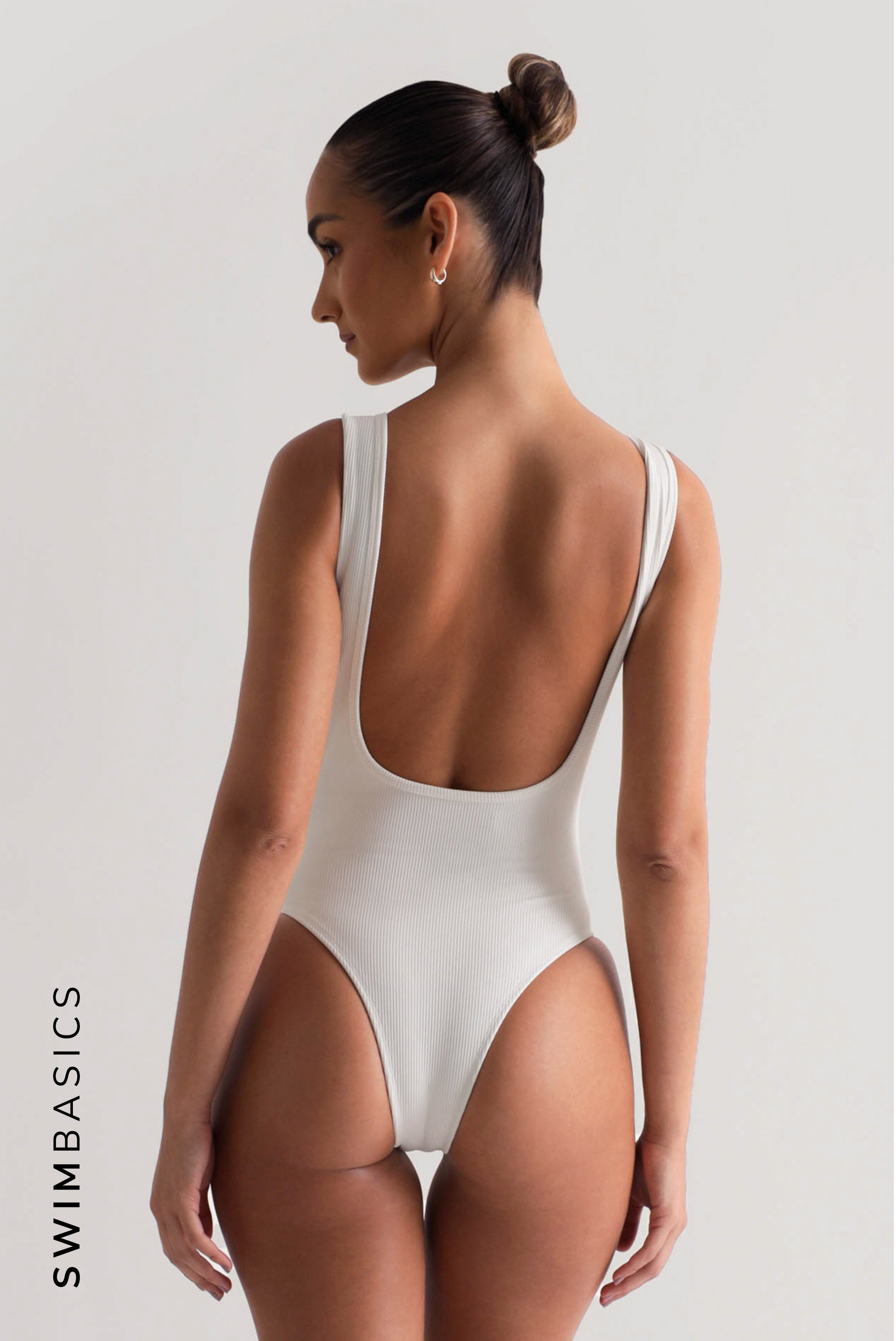 Figure One Piece v-neck, low back one-piece swimsuit. Elegantly designed for a classy and simple look.