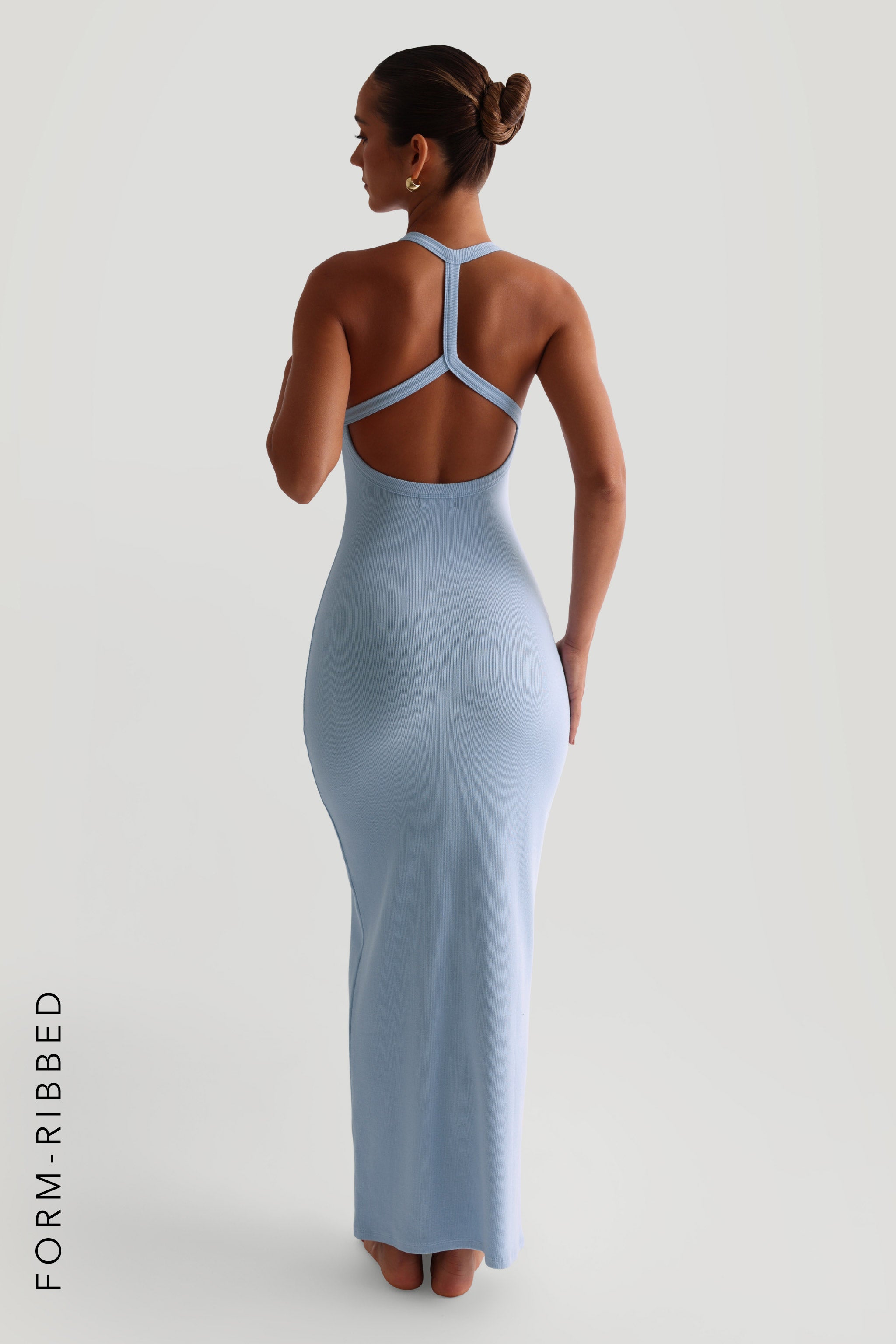 Inspired by the tank top, the Form-Ribbed Split-Back Maxi Dress is crafted from a fluid ribbed knit that moves with you. A clean open back and gently centered-back slit introduce a modern edge to its perfectly balanced silhouette—refined and versatile.