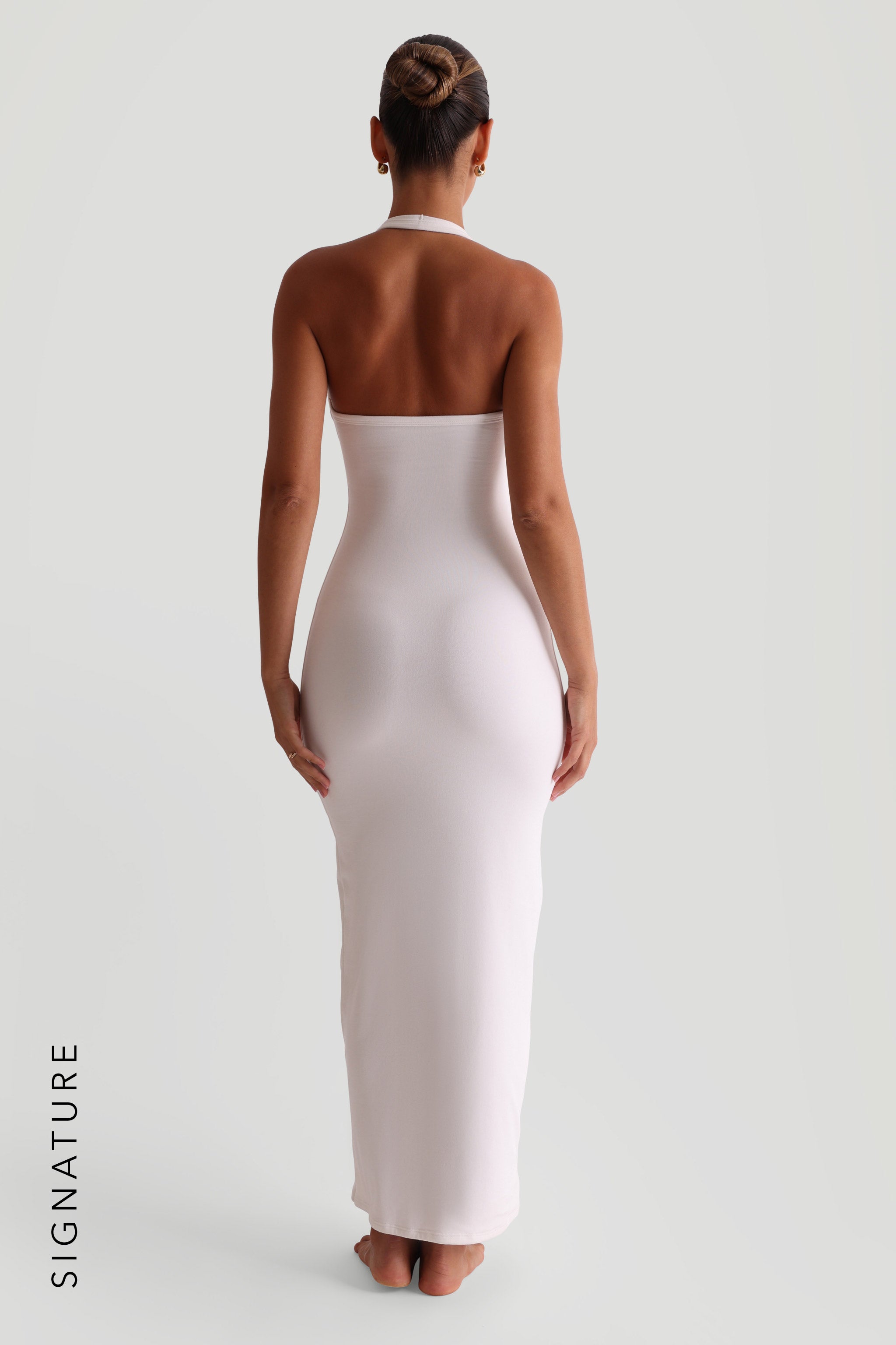 The Halter Maxi Dress features a softly scooped neckline that offers support across all chest sizes, balanced by an open back that sits just above the waist for a flattering, cinched effect. Effortlessly elegant, it moves with ease from daytime occasions to evening moments.