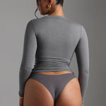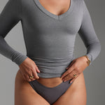 V-SHAPE LONG SLEEVE T-SHIRT - Stone Gray V-SHAPE LONG SLEEVE T-SHIRT