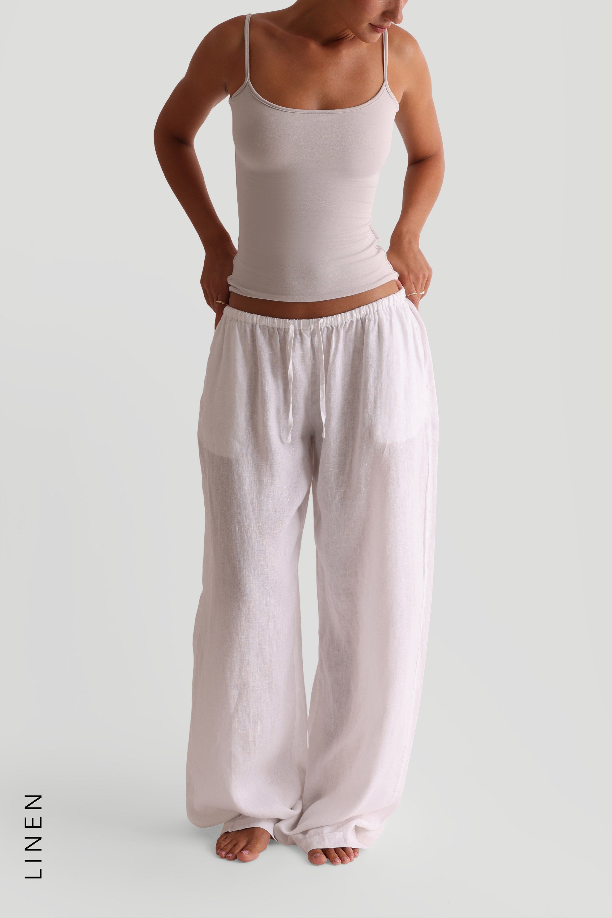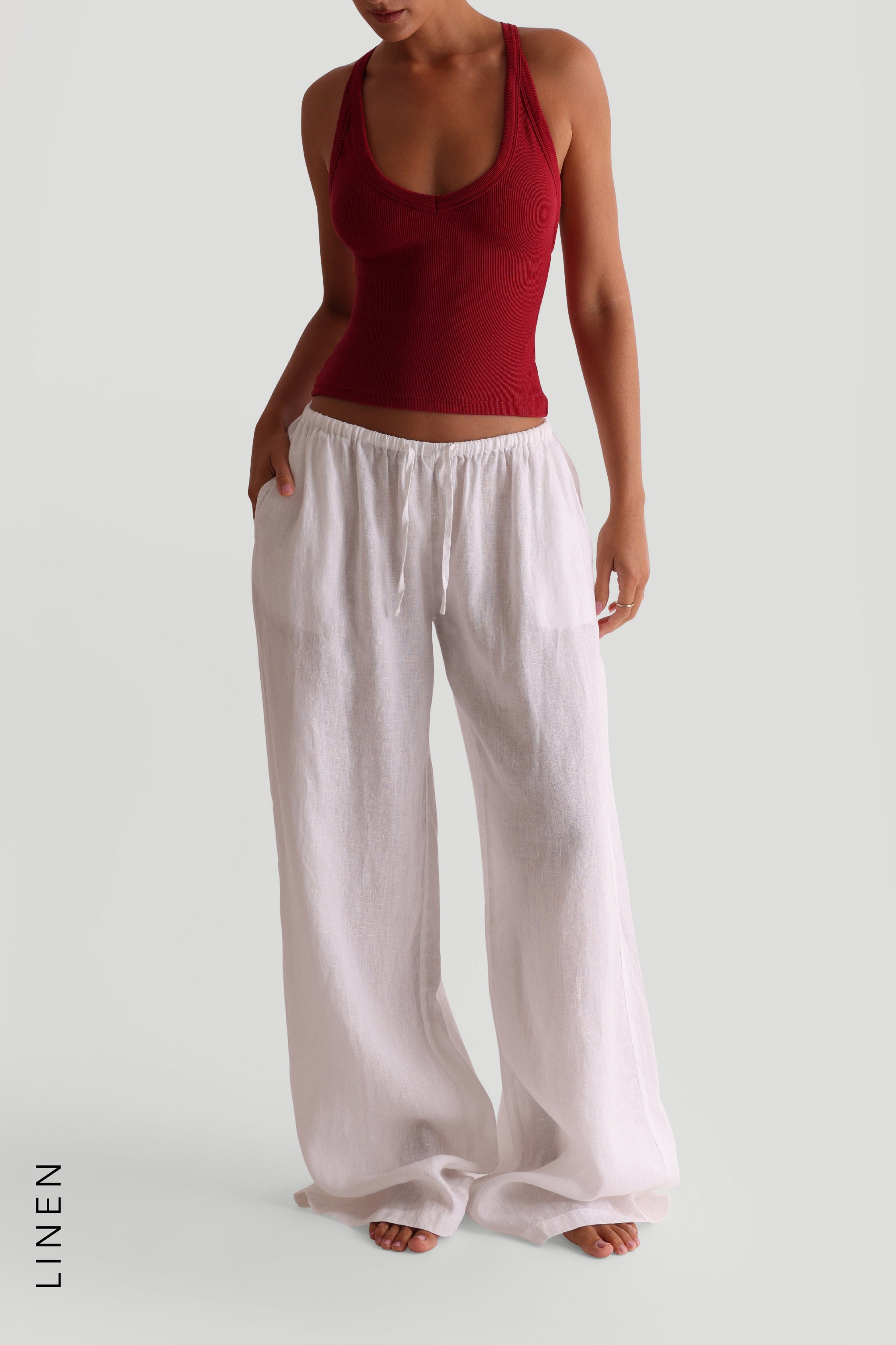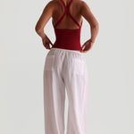 HERITAGE LINEN WIDE-LEG PANTS - White HERITAGE LINEN WIDE-LEG PANTS