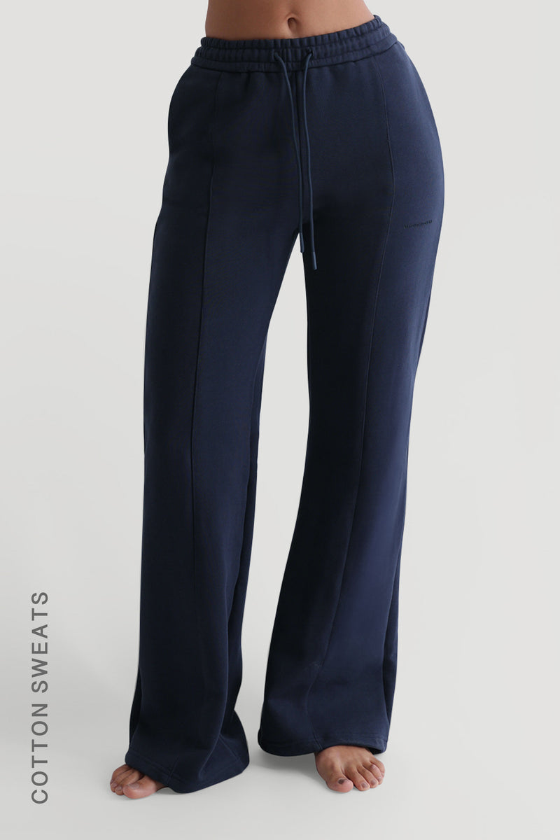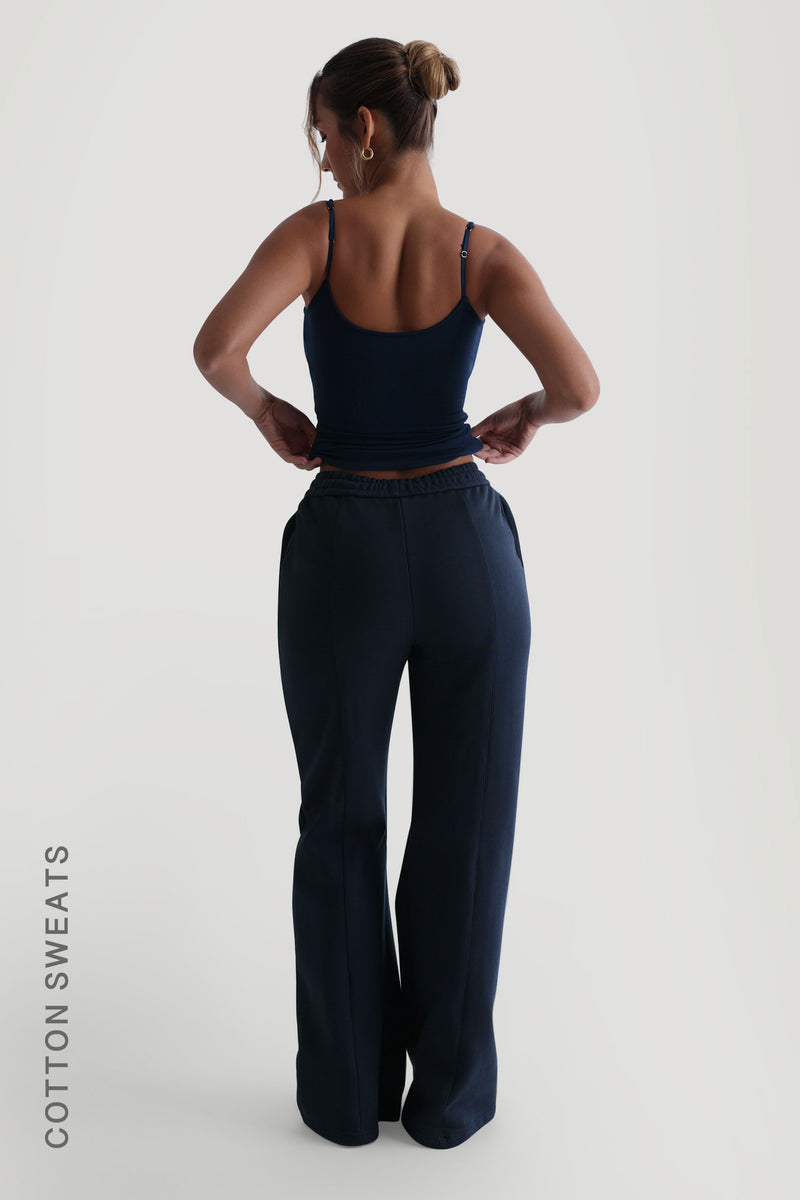 Structured Wide Leg Sweatpants - Navy Structured Wide Leg Sweatpants
