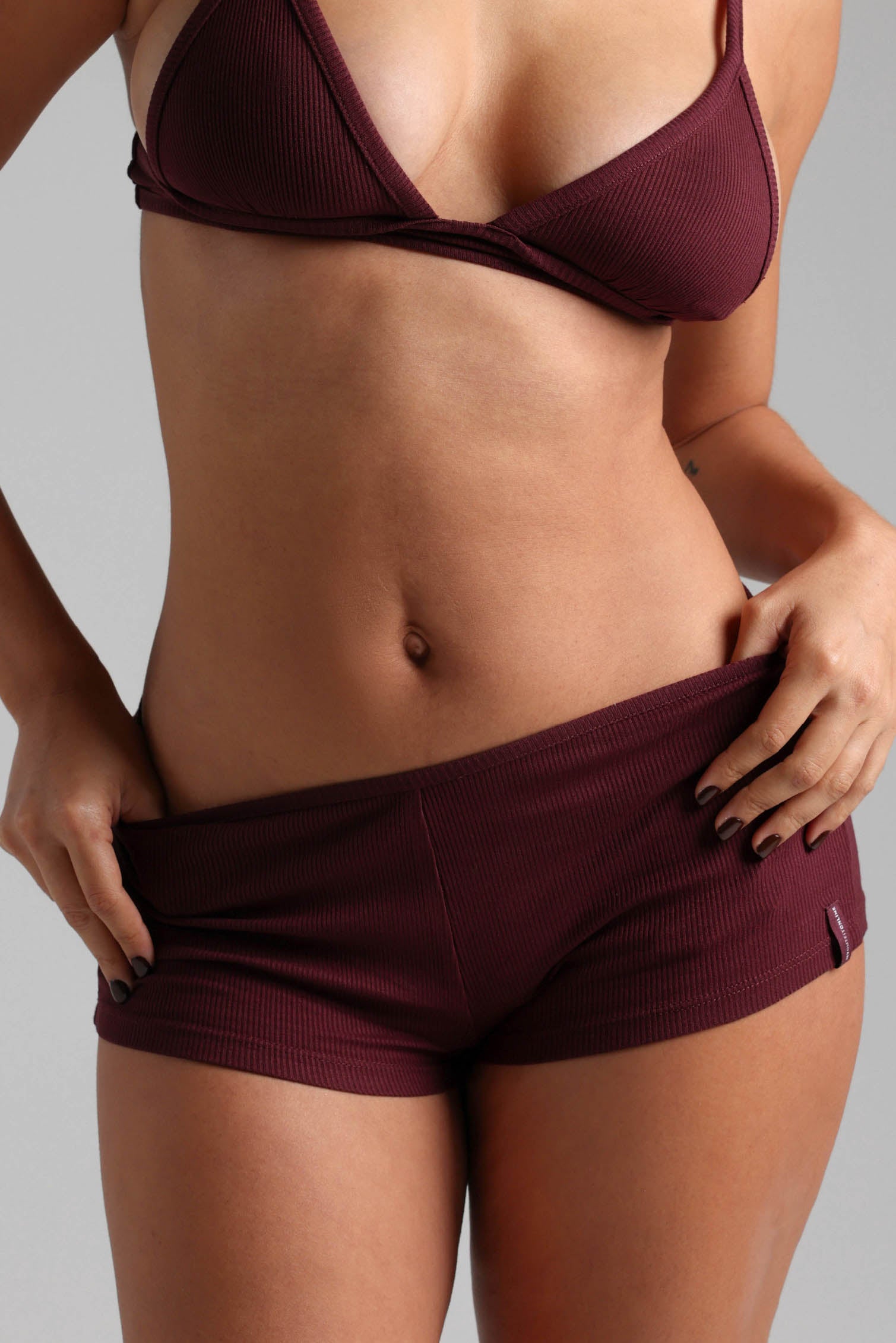 CLASSIC MICRO-RIBBED MINI SHORTS - Black Cherry CLASSIC MICRO-RIBBED MINI SHORTS