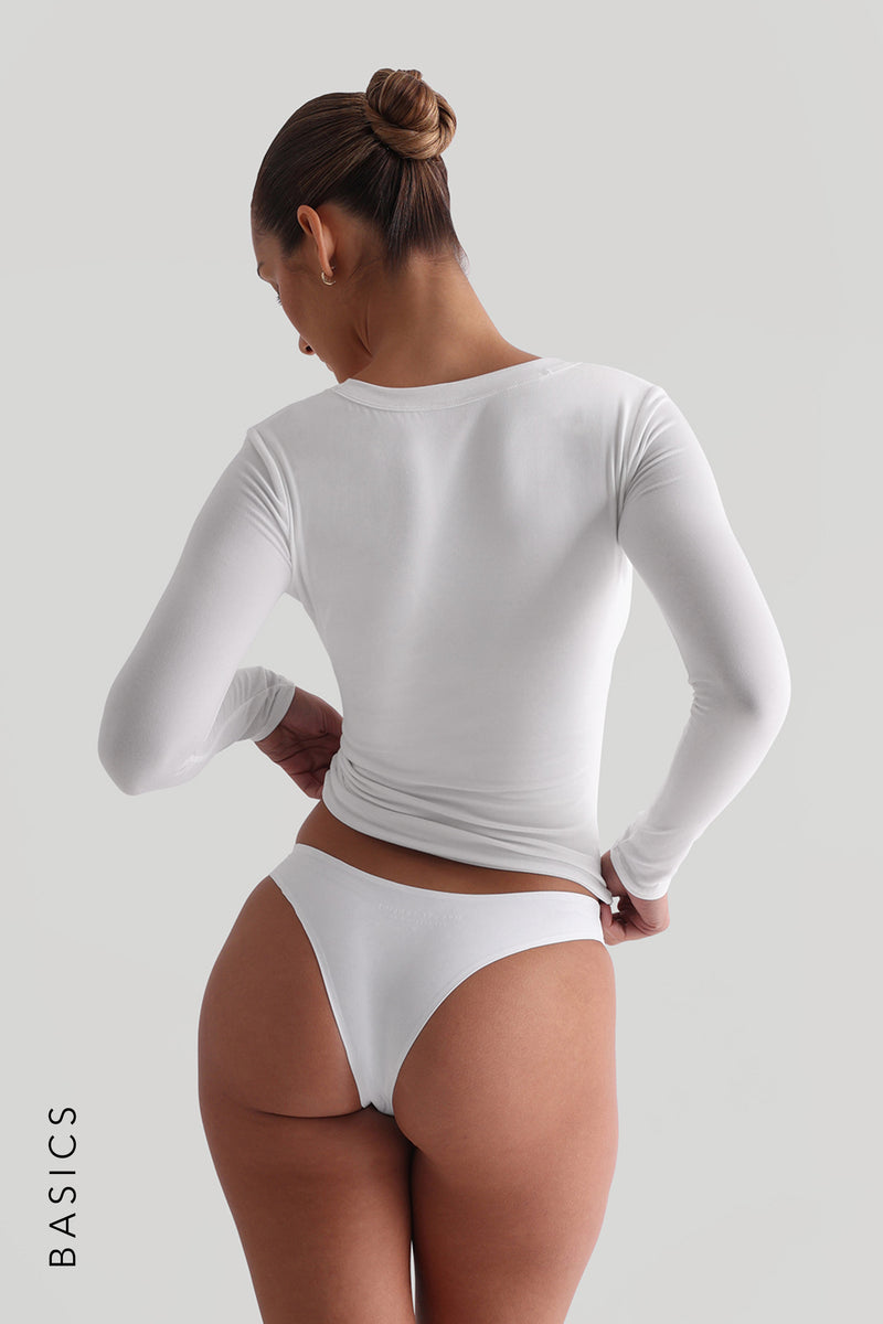 U-Shape Long Sleeve T-Shirt - White U-Shape Long Sleeve T-Shirt