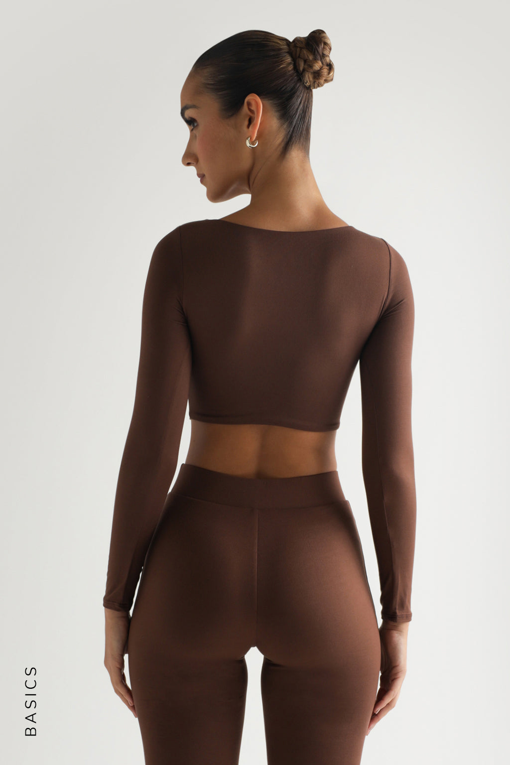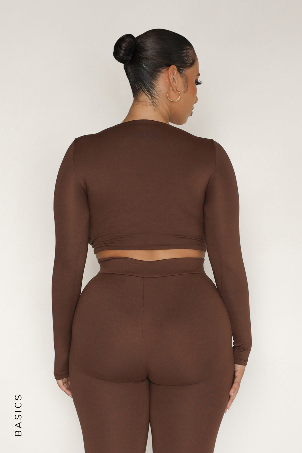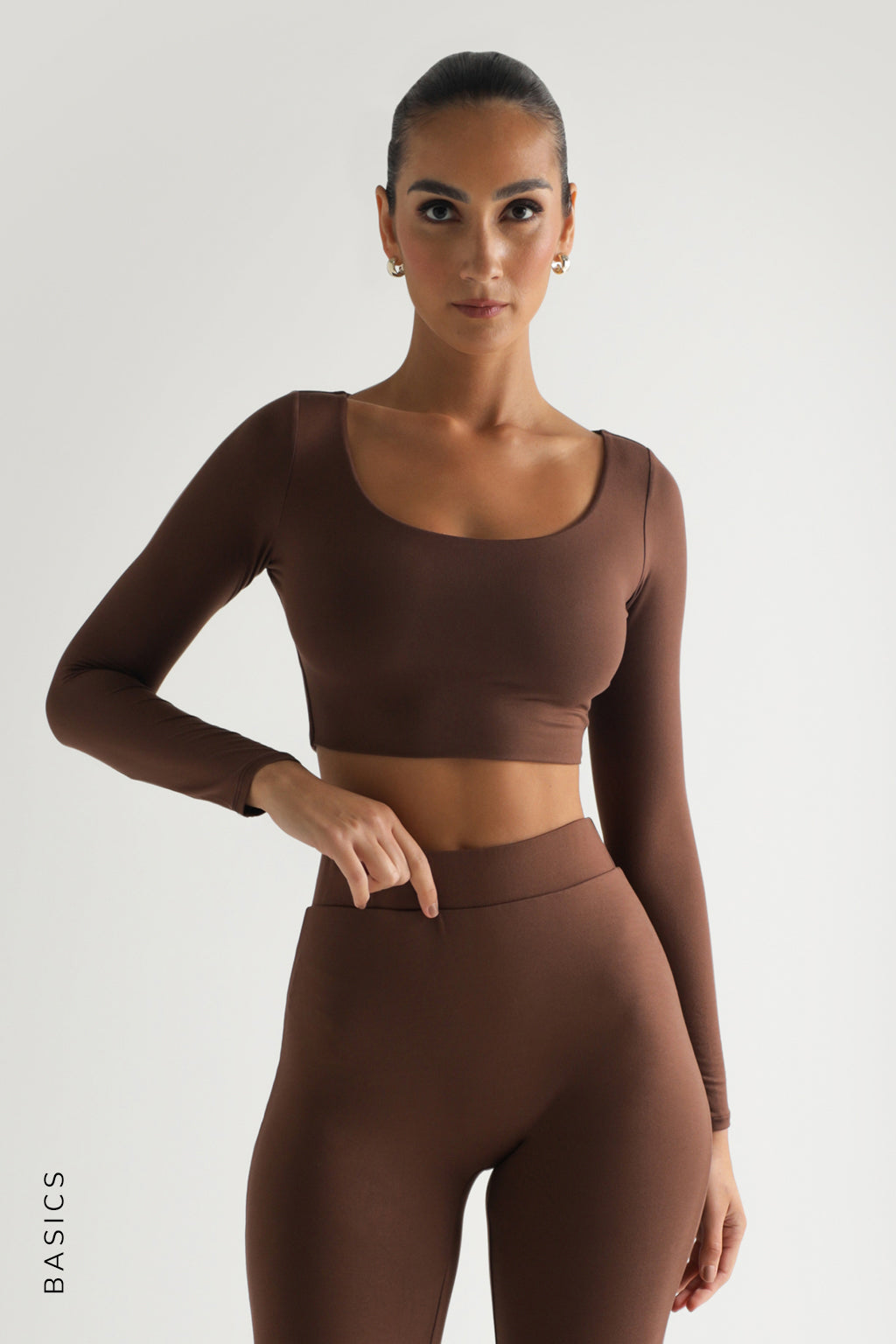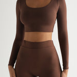 ROUND NECK LONG SLEEVE CROP TOP - Brown ROUND NECK LONG SLEEVE CROP TOP