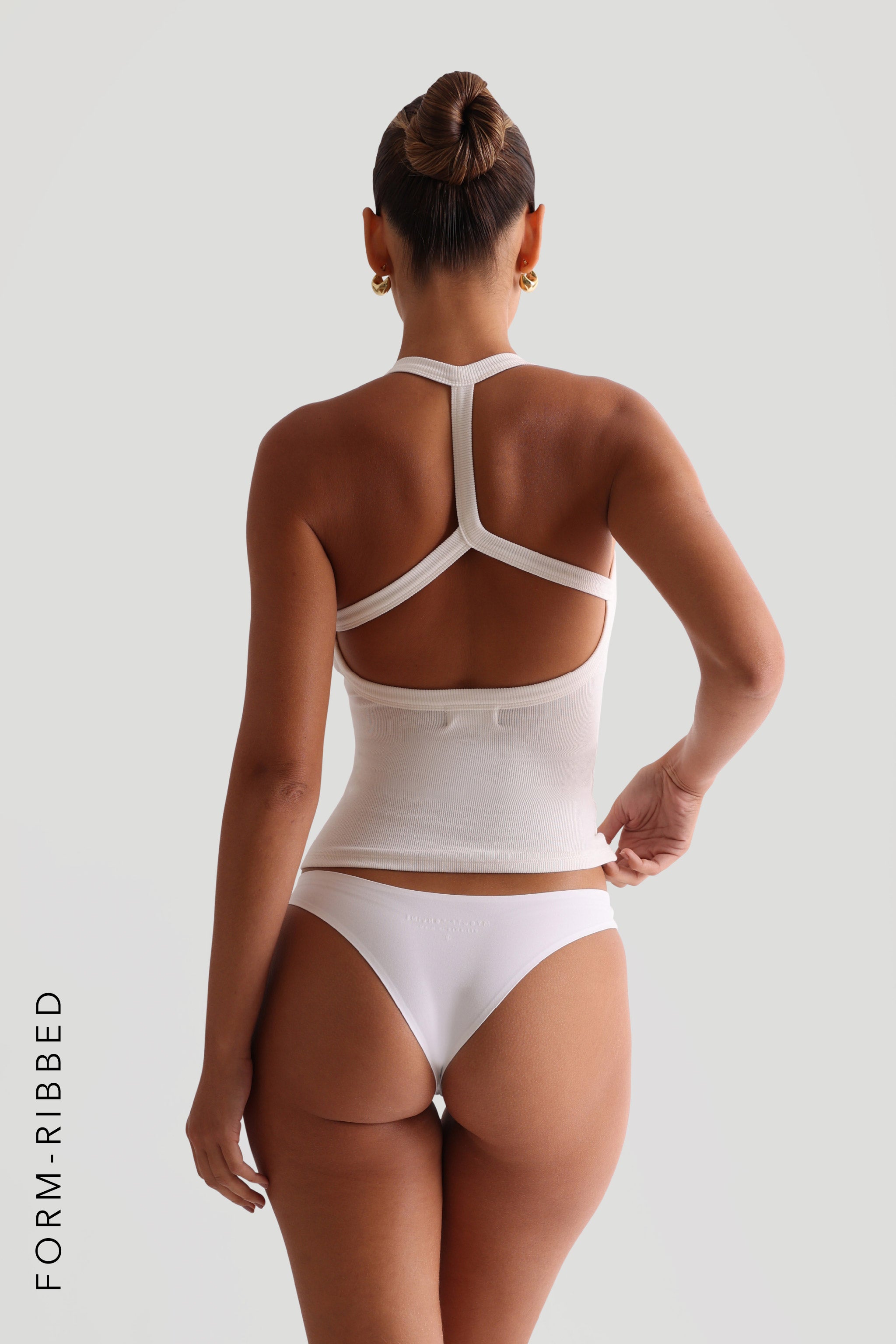 FORM-RIBBED SPLIT-BACK TANK TOP - White FORM-RIBBED SPLIT-BACK TANK TOP
