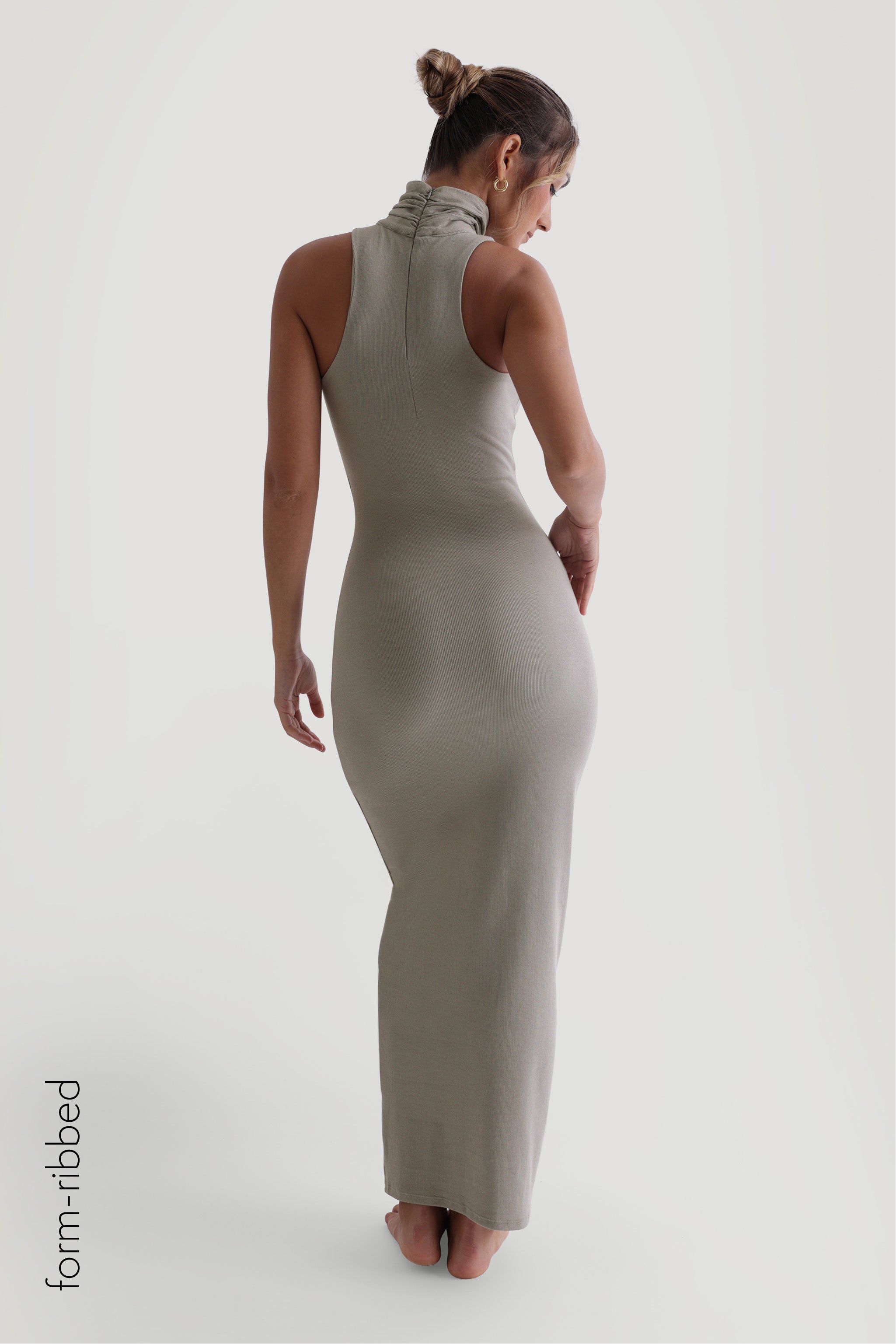 Ärmelloses, geripptes Maxikleid mit Rollkragen - Quiet Sage Ärmelloses, geripptes Maxikleid mit Rollkragen