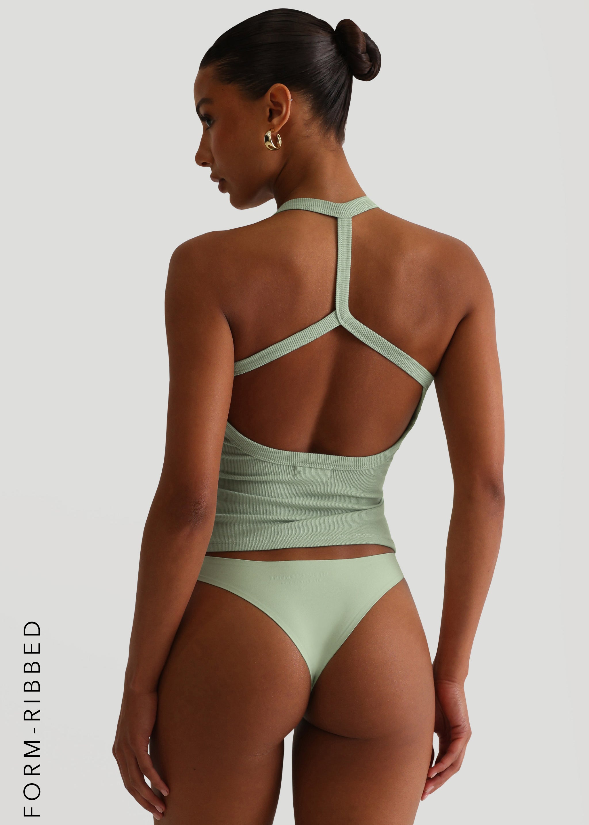 V-NECK MICRO-RIBBED HALTER TOP