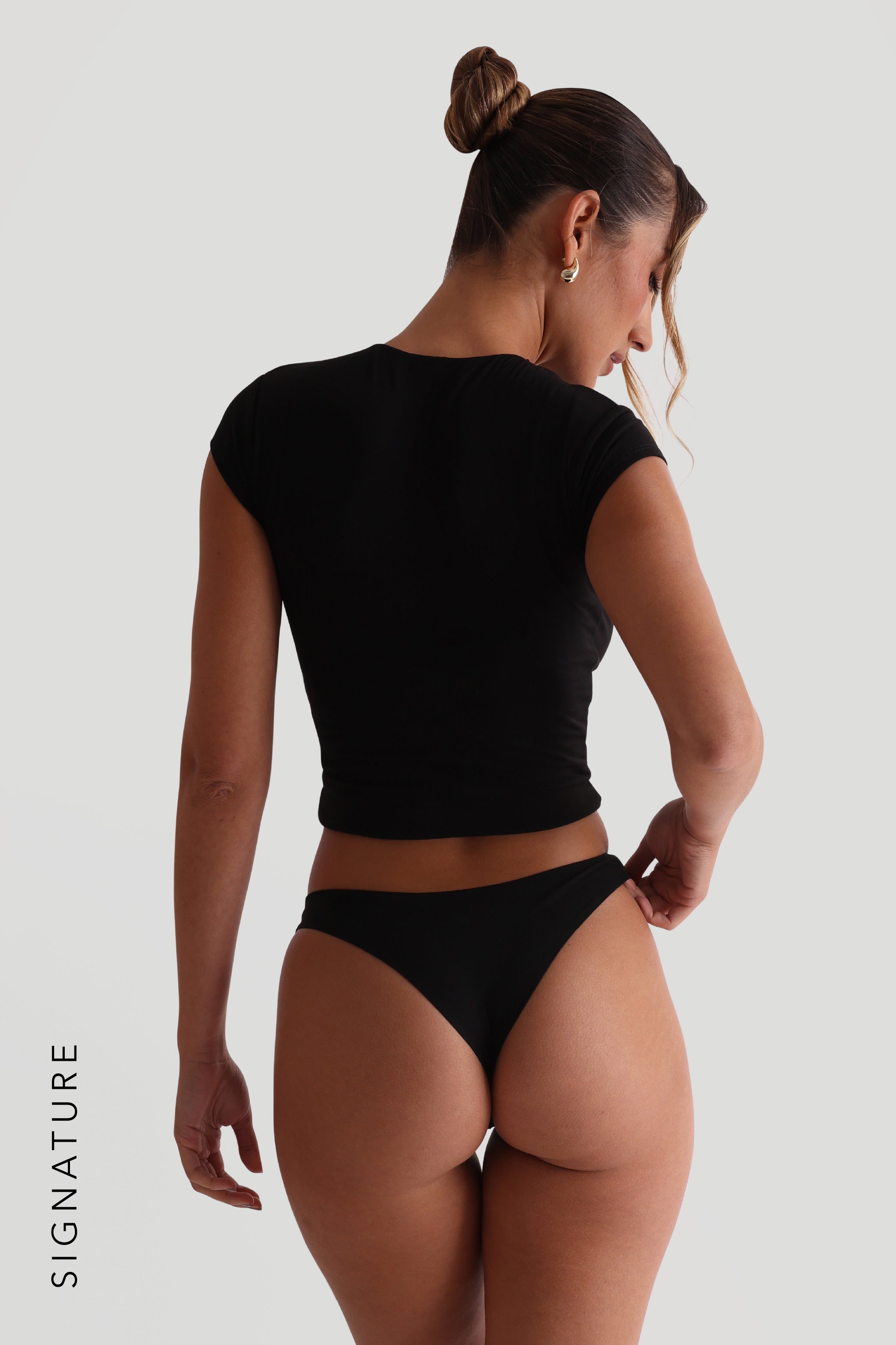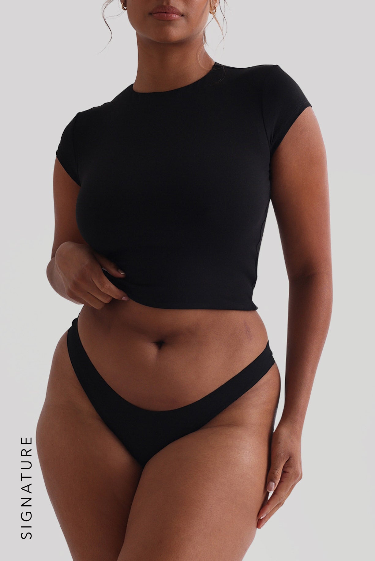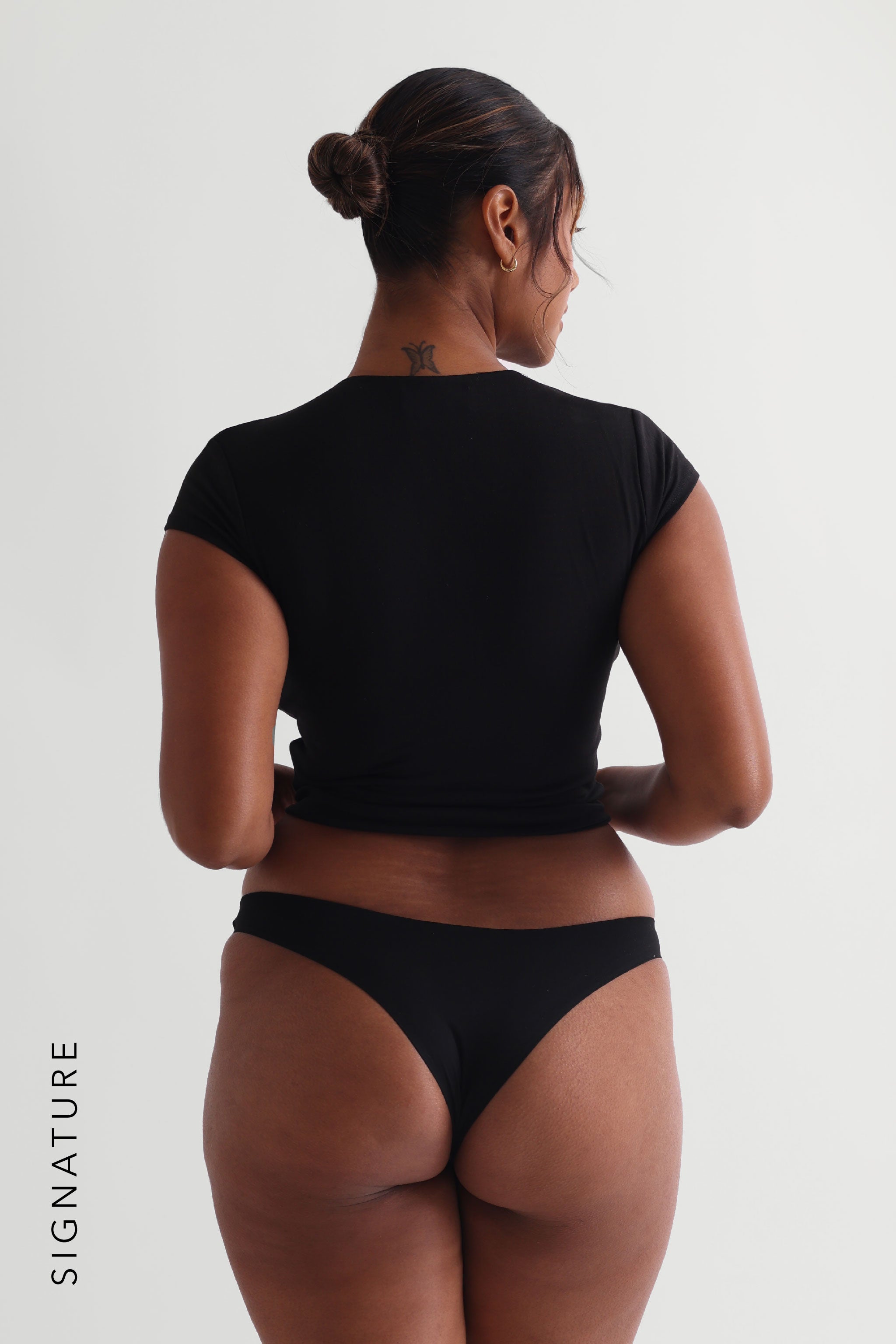 • Das Model trägt keinen BH