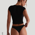 Baby-T-Shirt, doppelt gefüttert, kurzärmlig, mittellang und mit hohem Ausschnitt. Dieses Design hat Flügelärmel, die jeden Stil aufwerten. Unsere schmeichelhafte „Baby-T-Shirt“-Silhouette ist die perfekte Mischung aus Komfort und Vielseitigkeit.