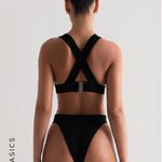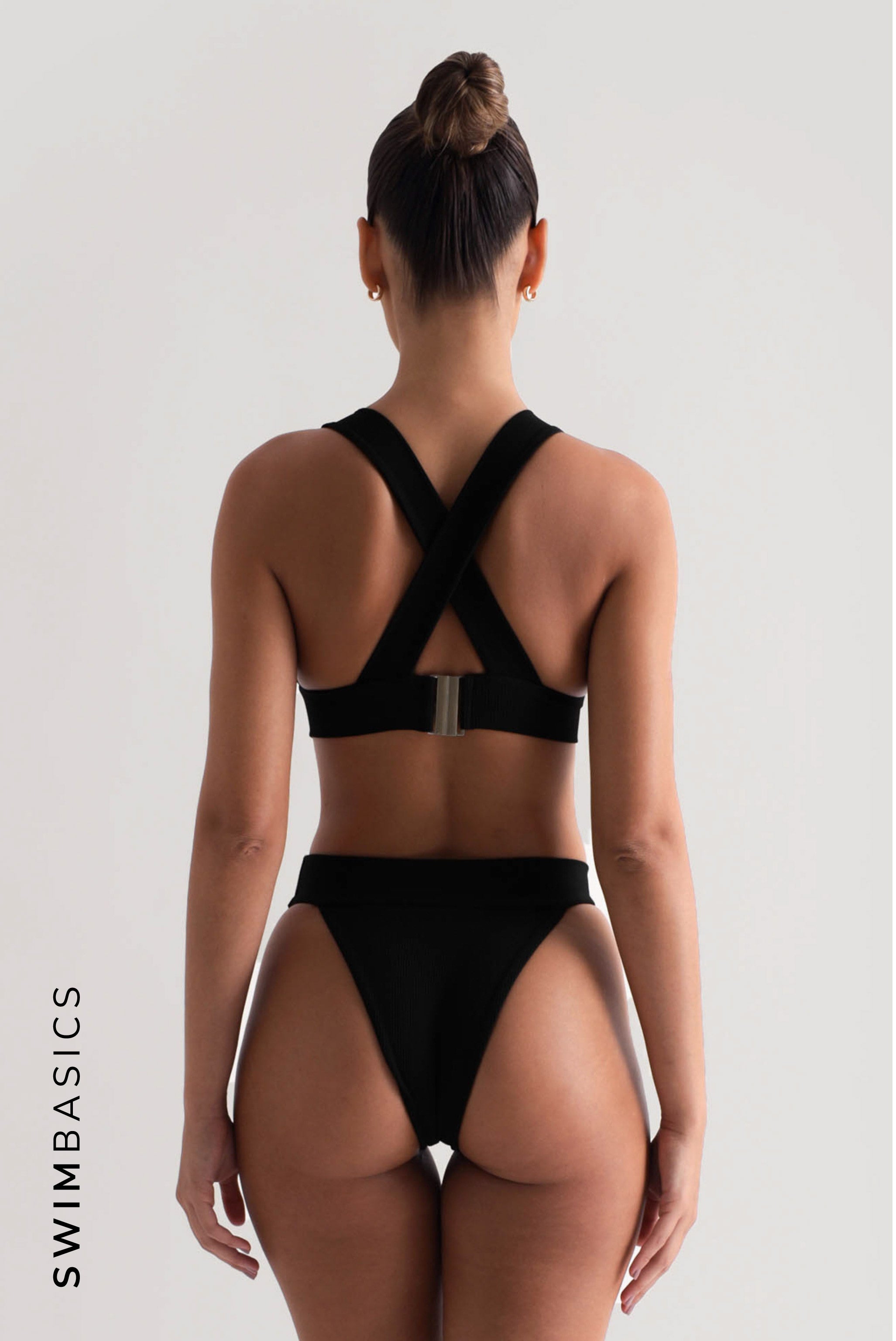 Elements Bikini Bottom mit hoher Leibhöhe und hohem Schnitt und dickem Taillengurt. Die Vielseitigkeit dieses Bikini-Unterteils ermöglicht es, es mit jedem Bikini-Oberteil zu kombinieren.