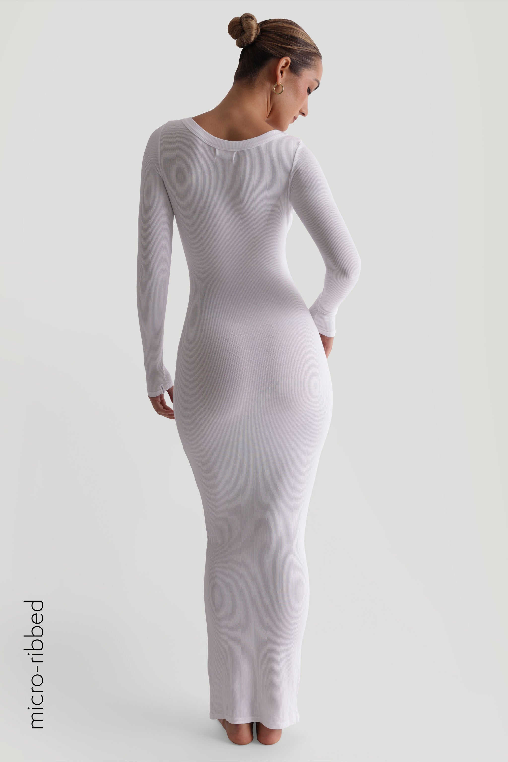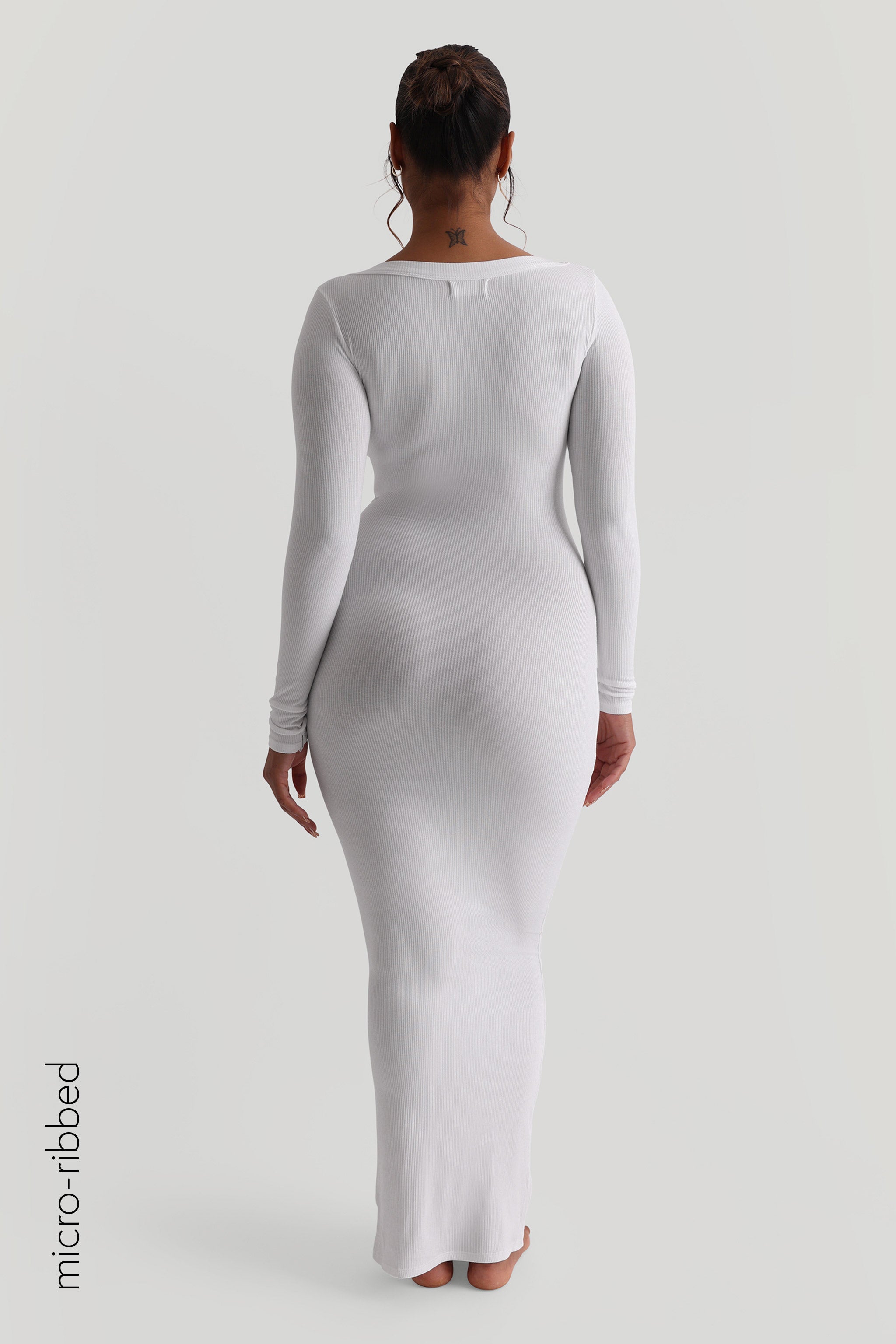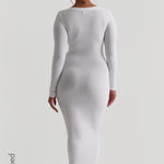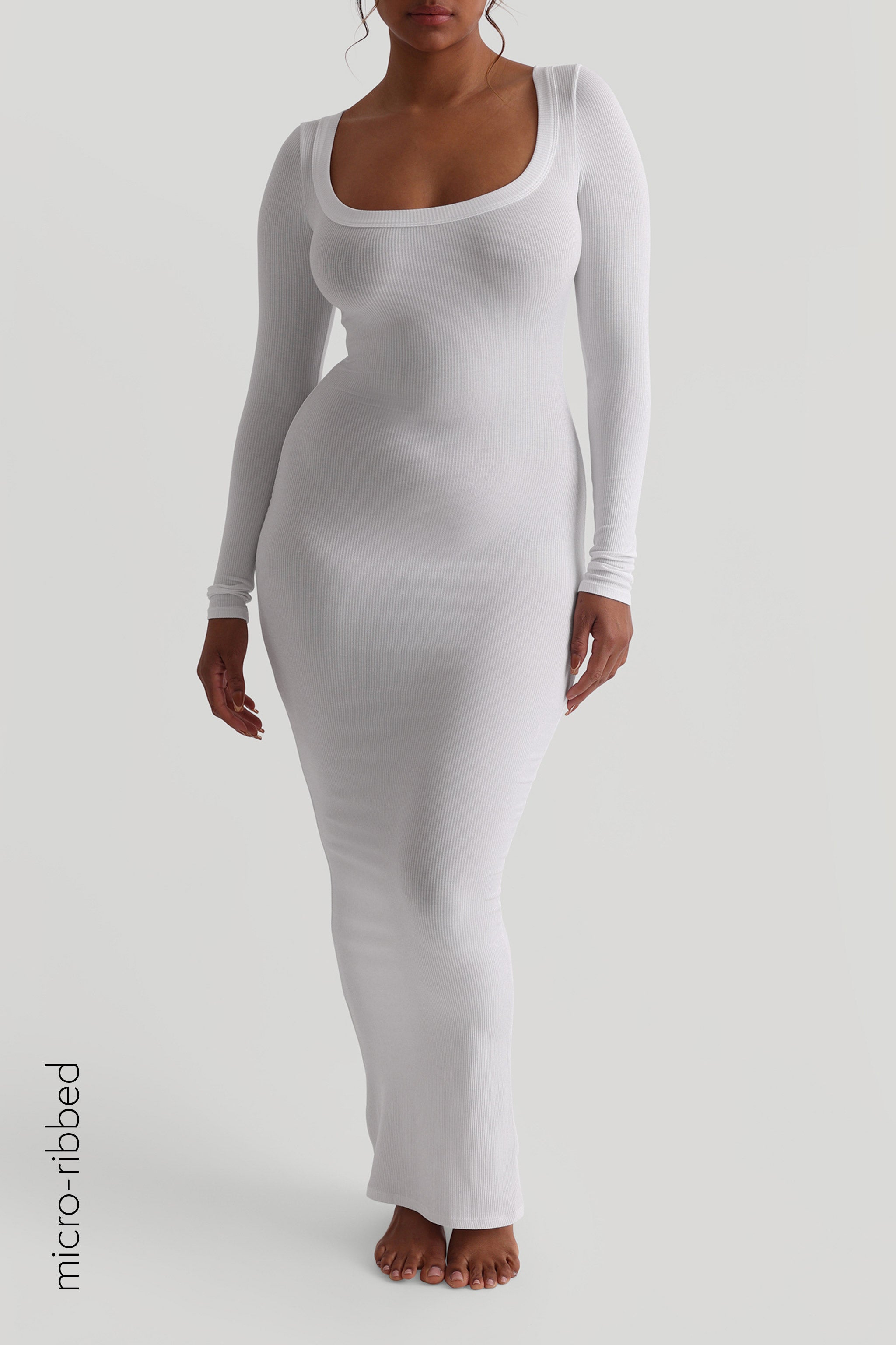 Maxikleid mit U-Ausschnitt und Mikrorippenmuster - Weiß Maxikleid mit U-Ausschnitt und Mikrorippenmuster