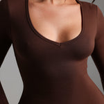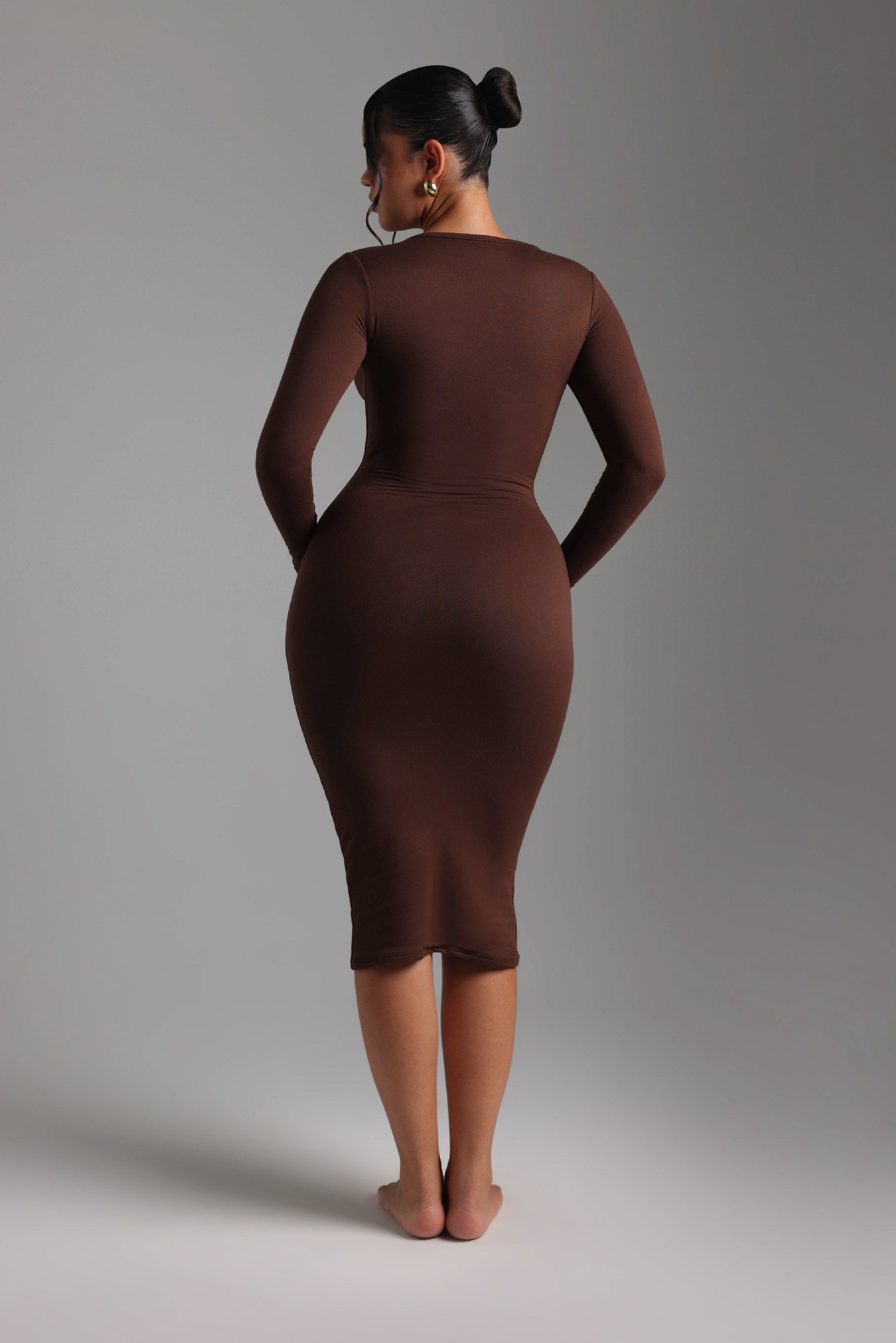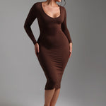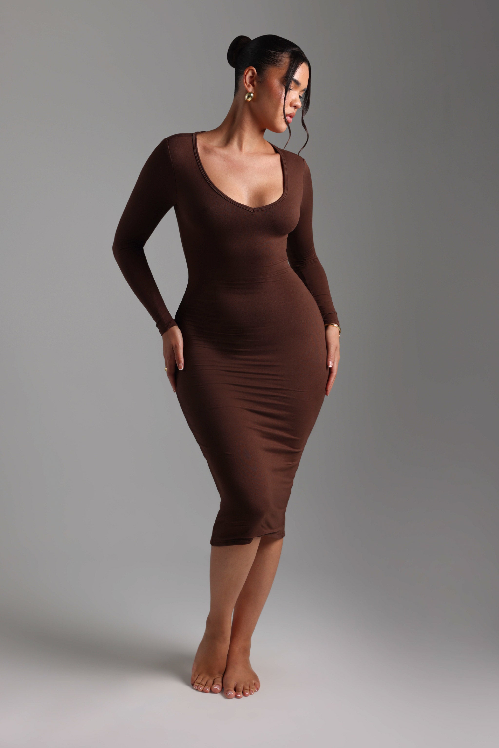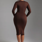 Made in our Signature Fabric, the V-Shape Long Sleeve Midi Dress features a thin banding along the v-shaped neckline to flatter and support all chest sizes.