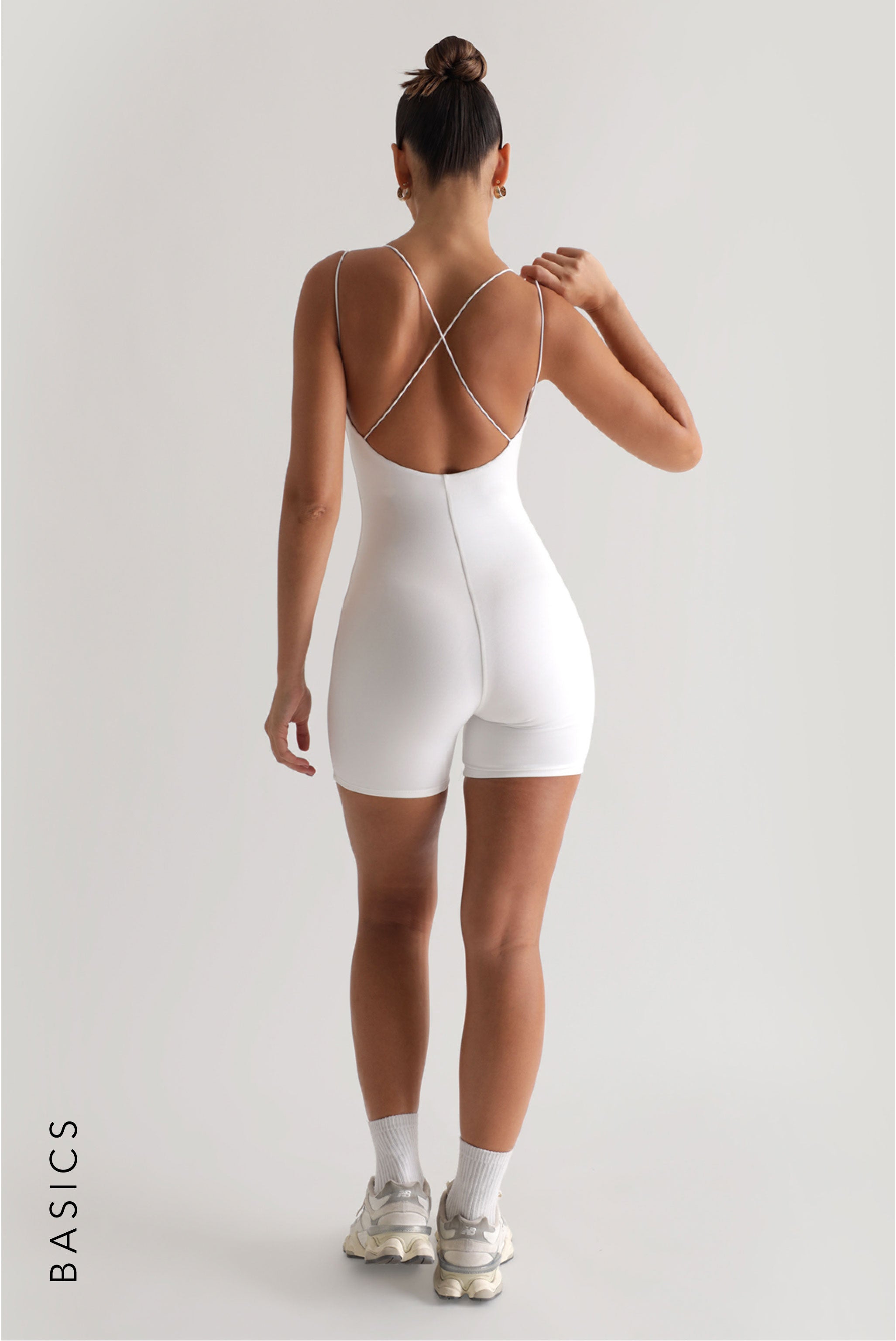 Strampler mit überkreuztem Rücken und String - Weiß Strampler mit überkreuztem Rücken und String