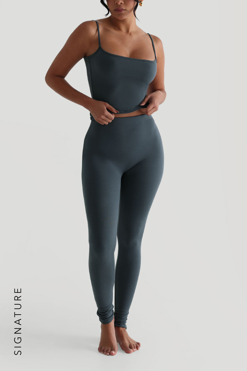 Signature Fabric: high stretch, medium compression, not sheer