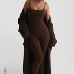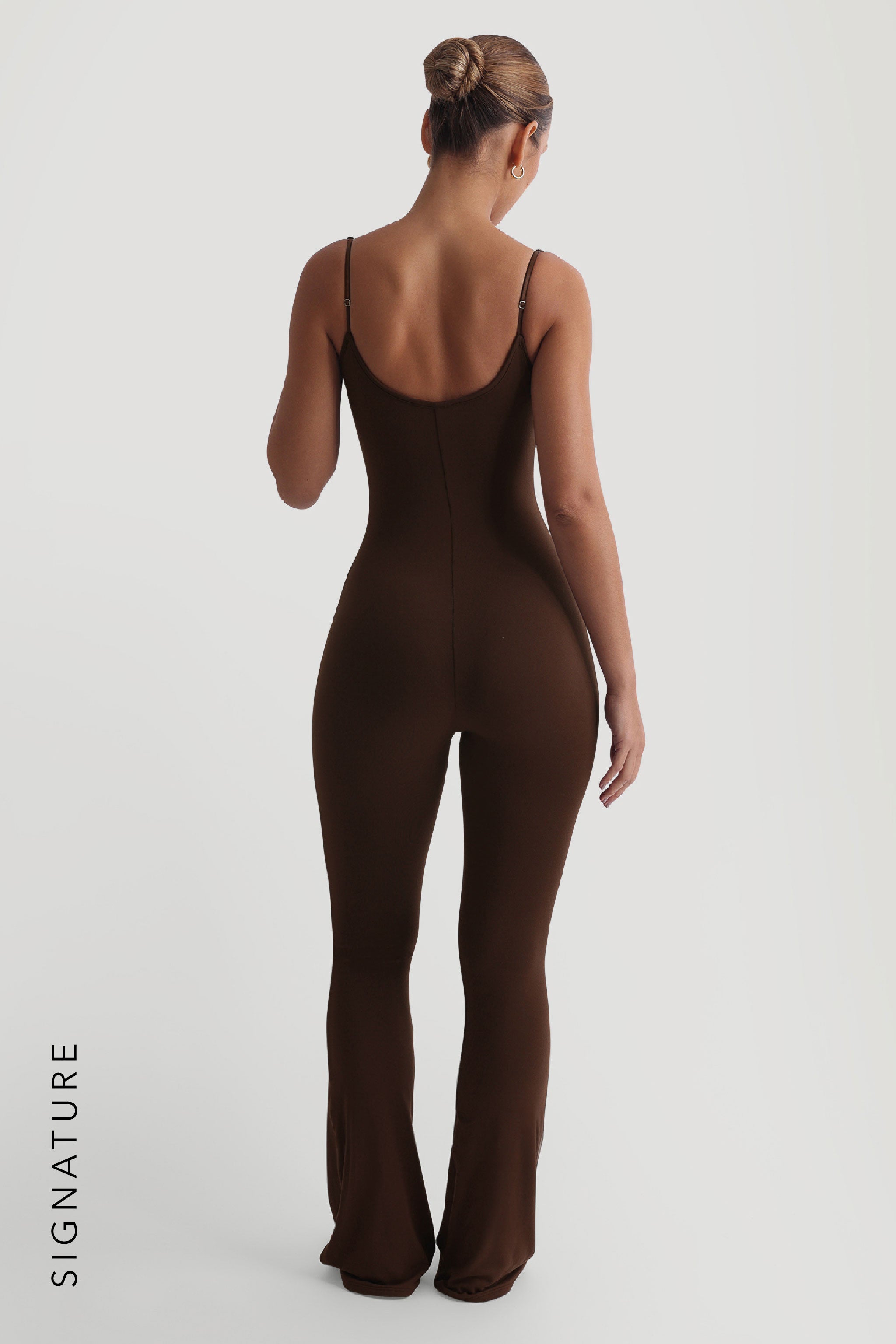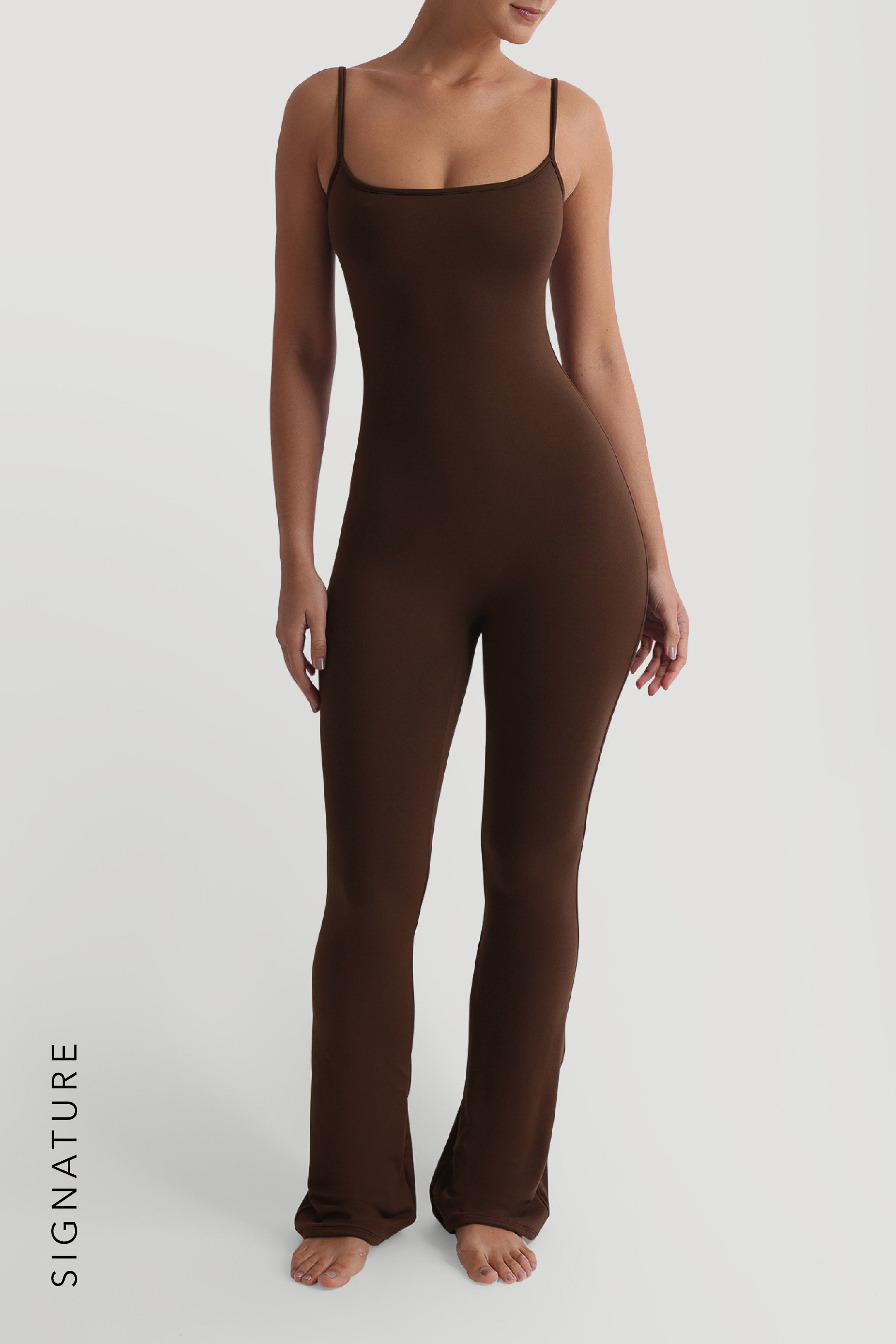The Prime Cami Flared Jumpsuit provides a seamless experience when slipped on. It features adjustable straps, a flared bottom, and a scooped neckline to flatter all chest sizes.