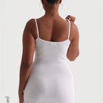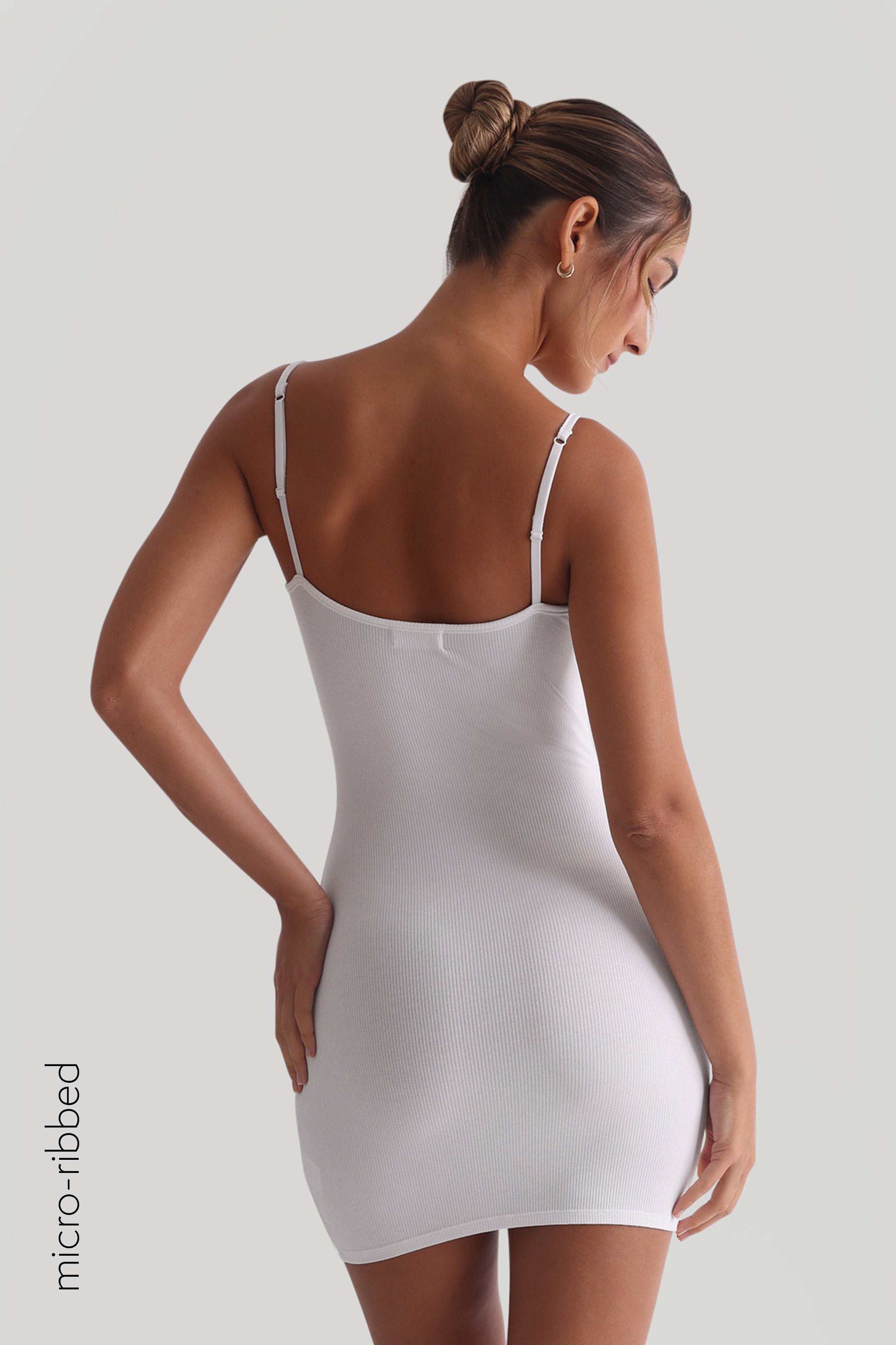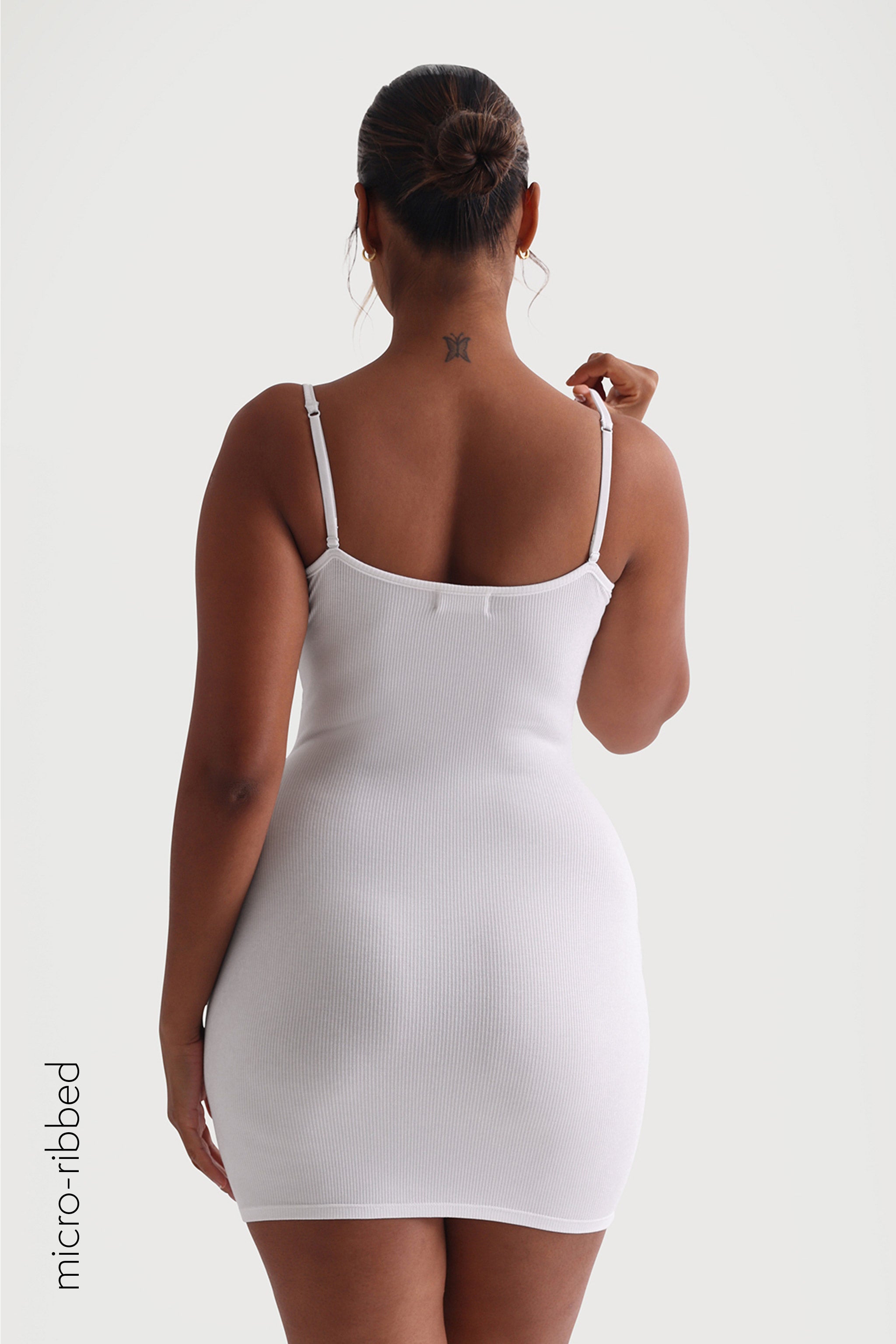 Das Slip-On-Minikleid mit Mikrorippen ist von unserer Maxikleid-Version inspiriert und bietet jetzt in kürzerer Länge ein leichtes, nahtloses Tragegefühl. Es verfügt über verstellbare Träger und einen weiten Rundhalsausschnitt, der allen Brustgrößen schmeichelt.