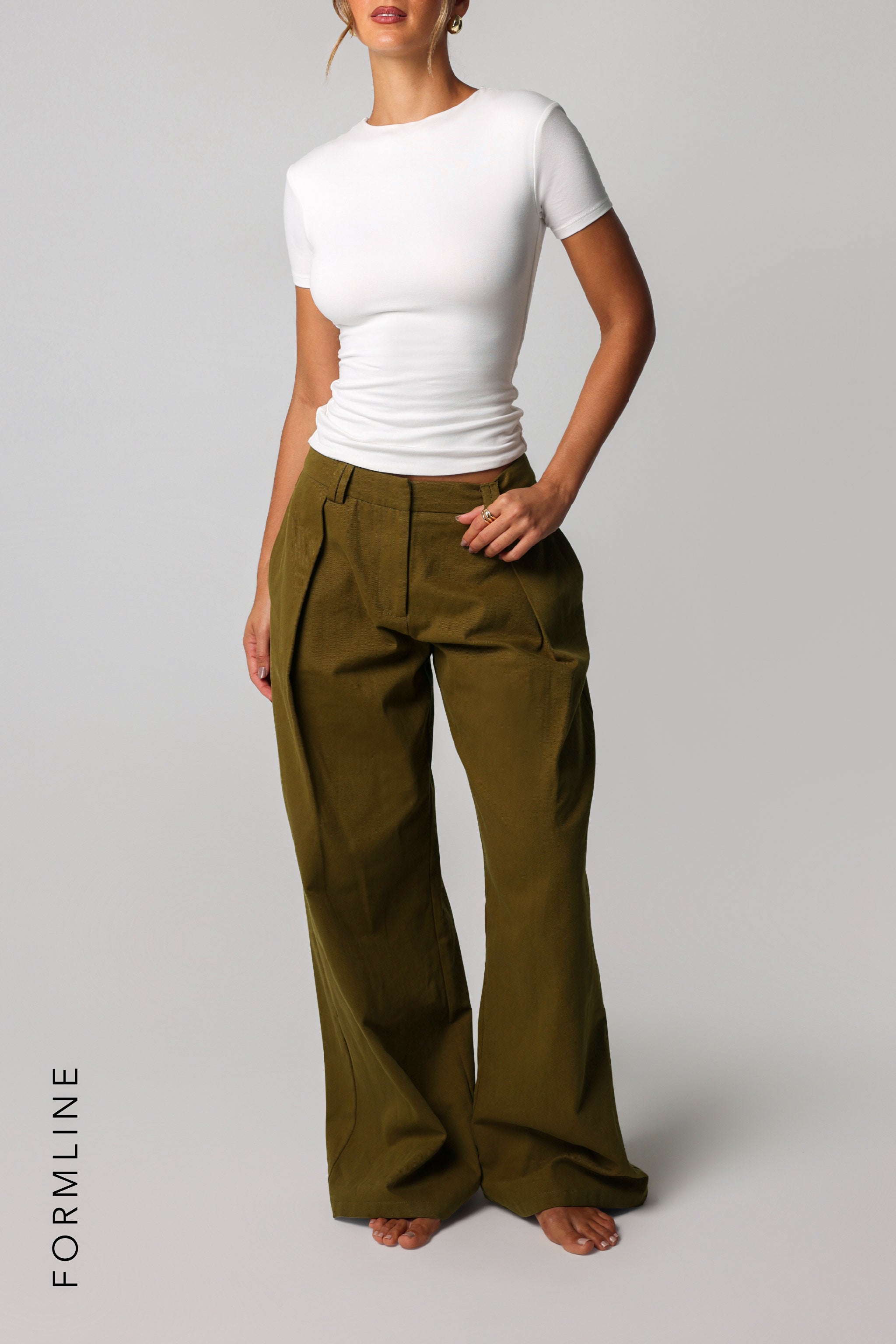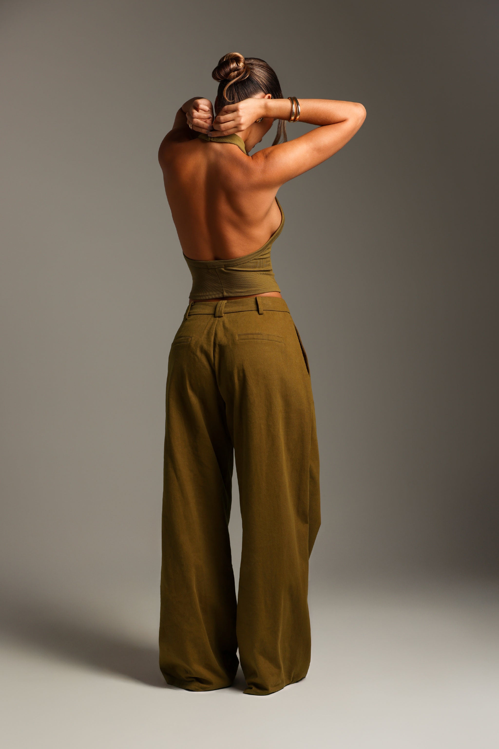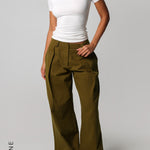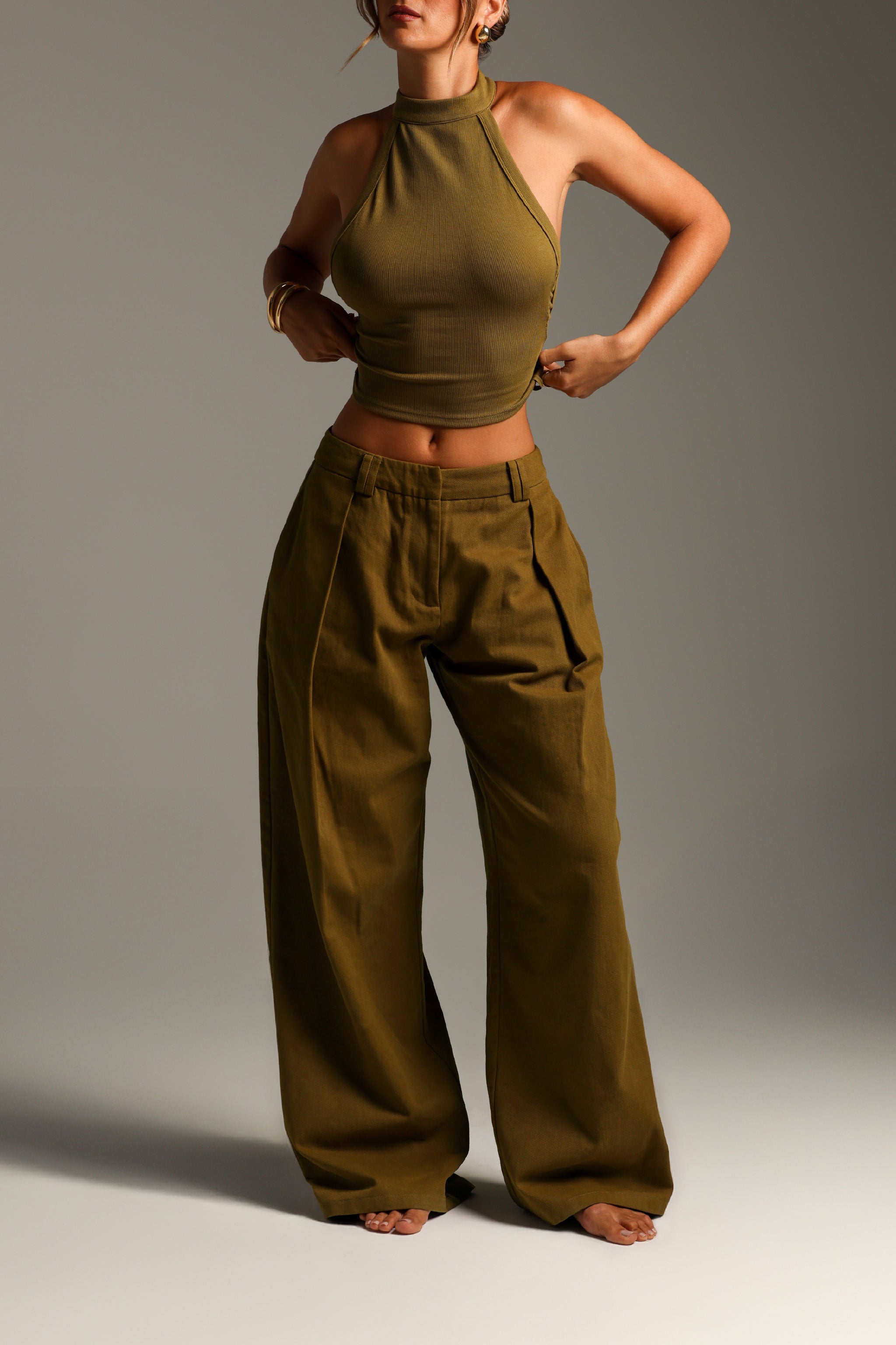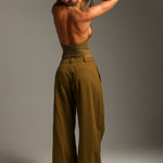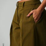 THE MERIDIAN WIDE-LEG TROUSERS - Olive Oil THE MERIDIAN WIDE-LEG TROUSERS