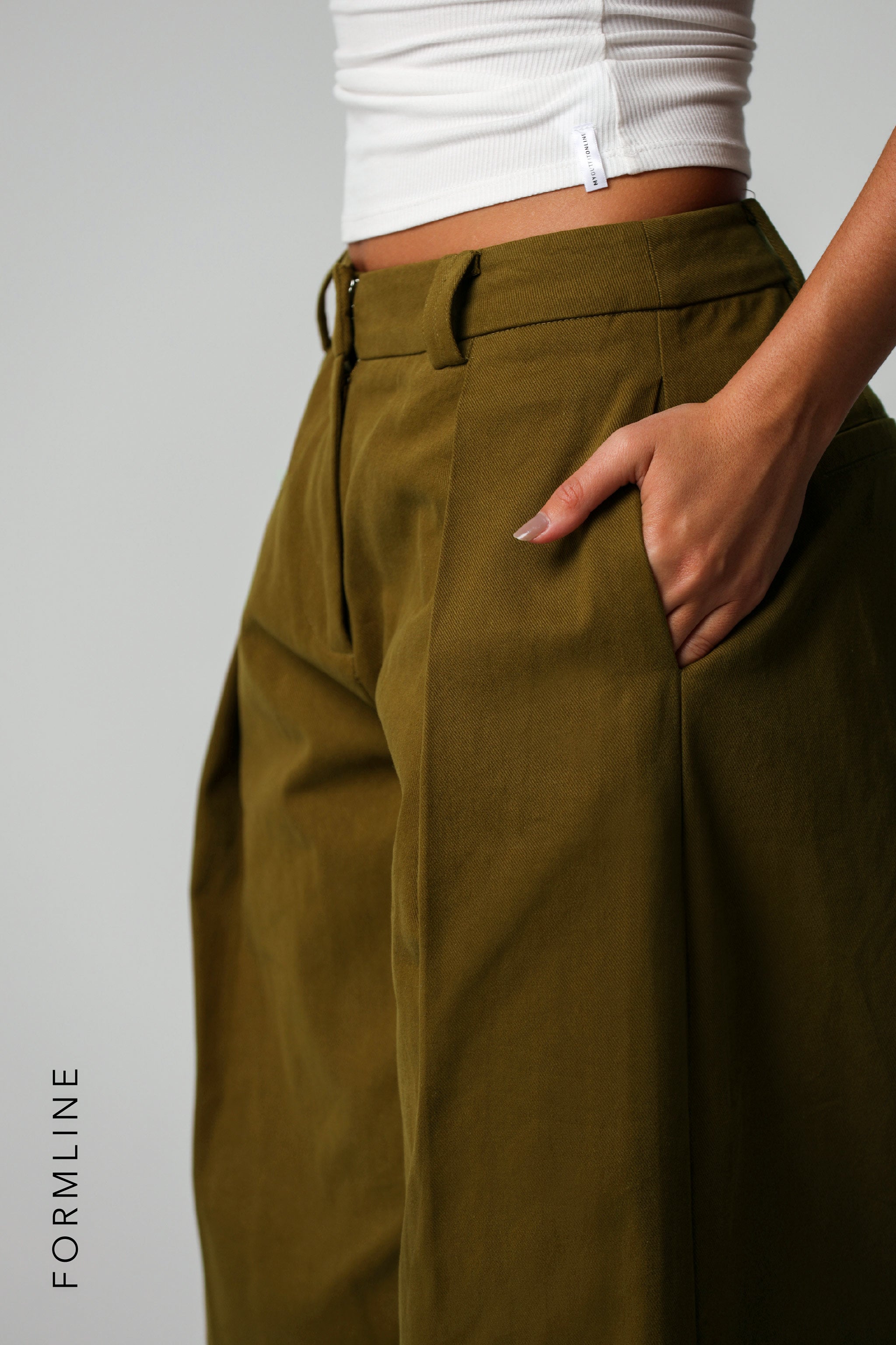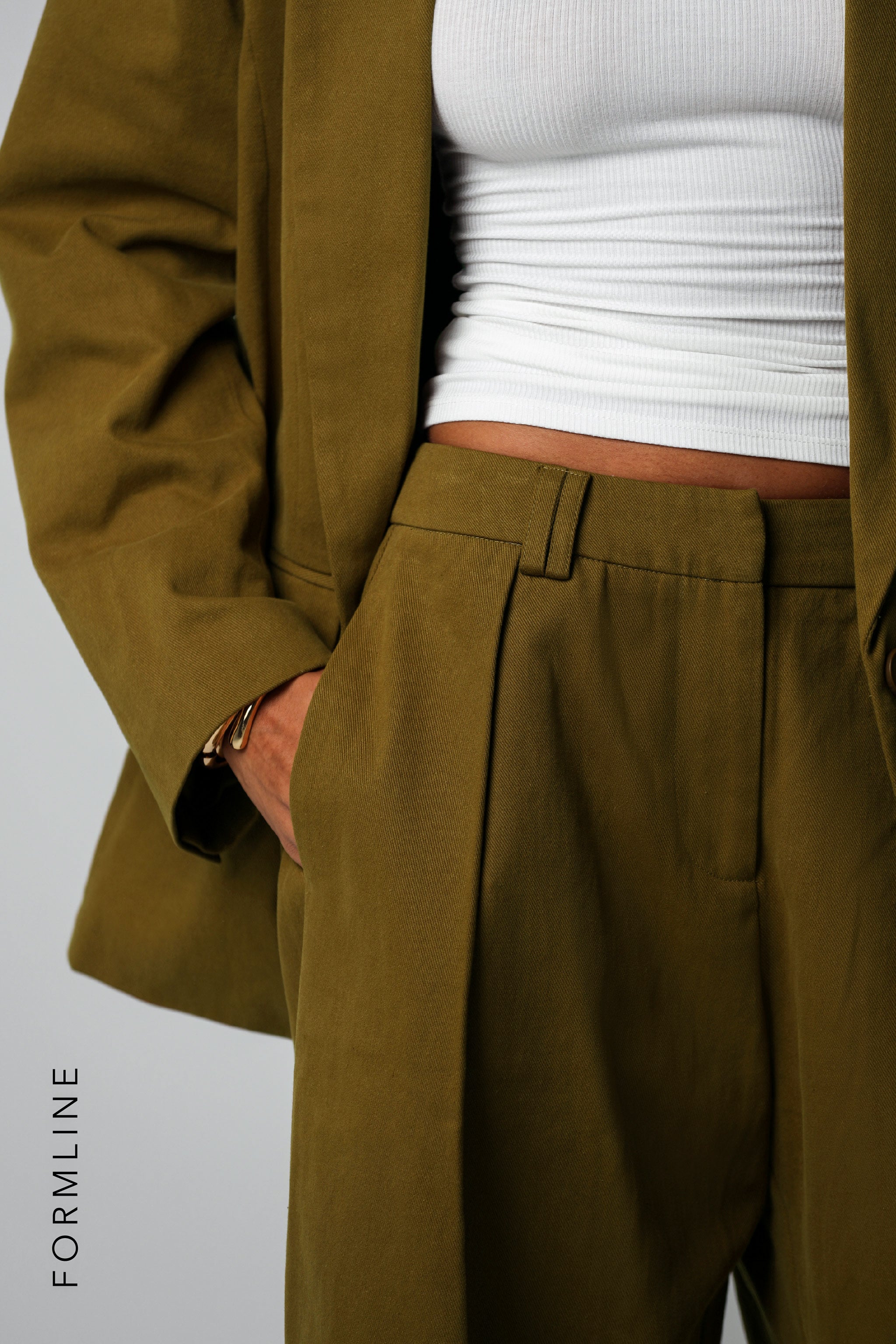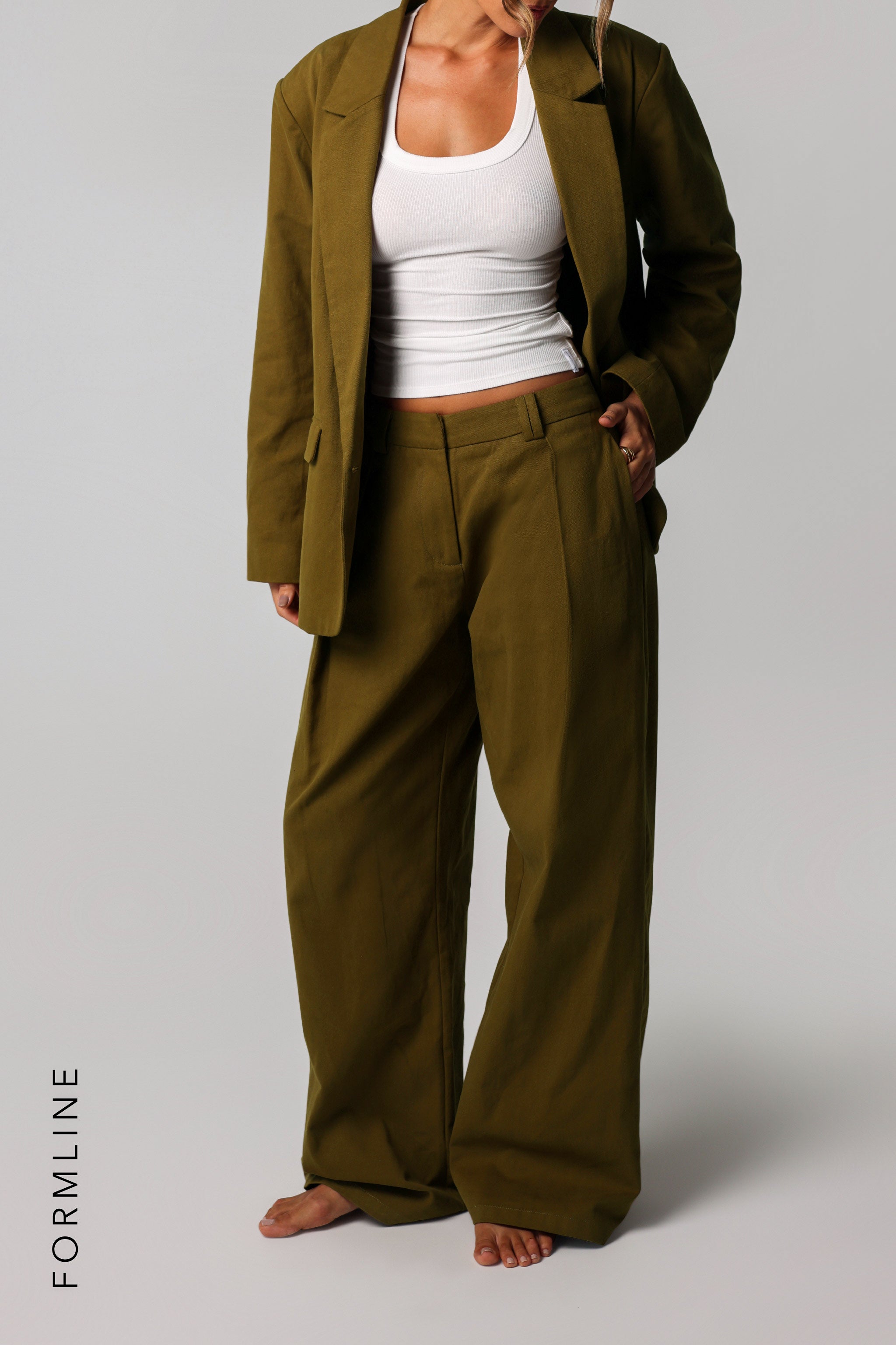 THE MERIDIAN WIDE-LEG TROUSERS - Olive Oil THE MERIDIAN WIDE-LEG TROUSERS