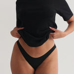 Breanna: 5'9", kleine Größe oben, mittlere Größe unten (Brustumfang 36,5", Taillenumfang 30", Hüftumfang 45")