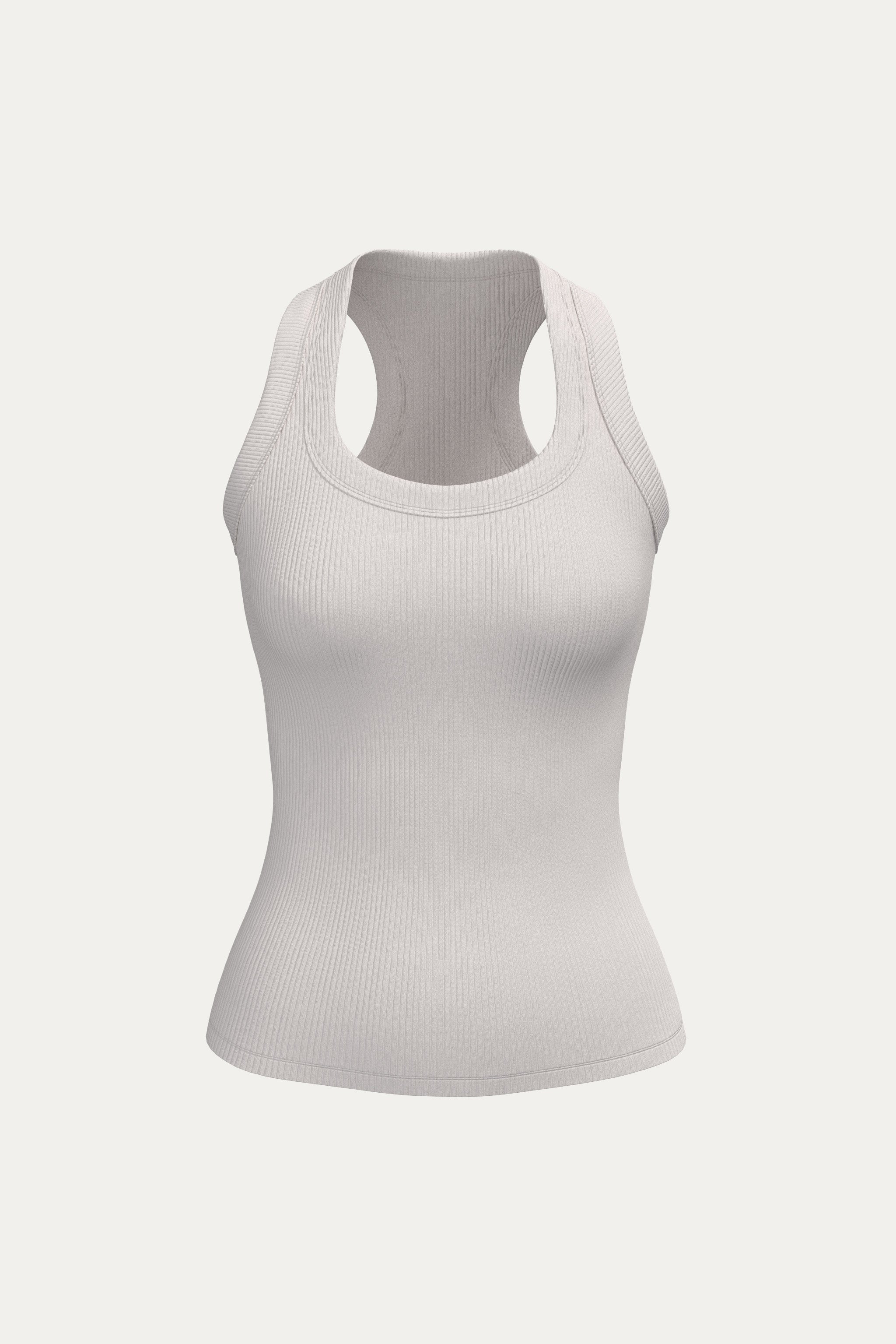 T-SHAPE MICRO-RIBBED TANK TOP - Buttercream T-SHAPE MICRO-RIBBED TANK TOP
