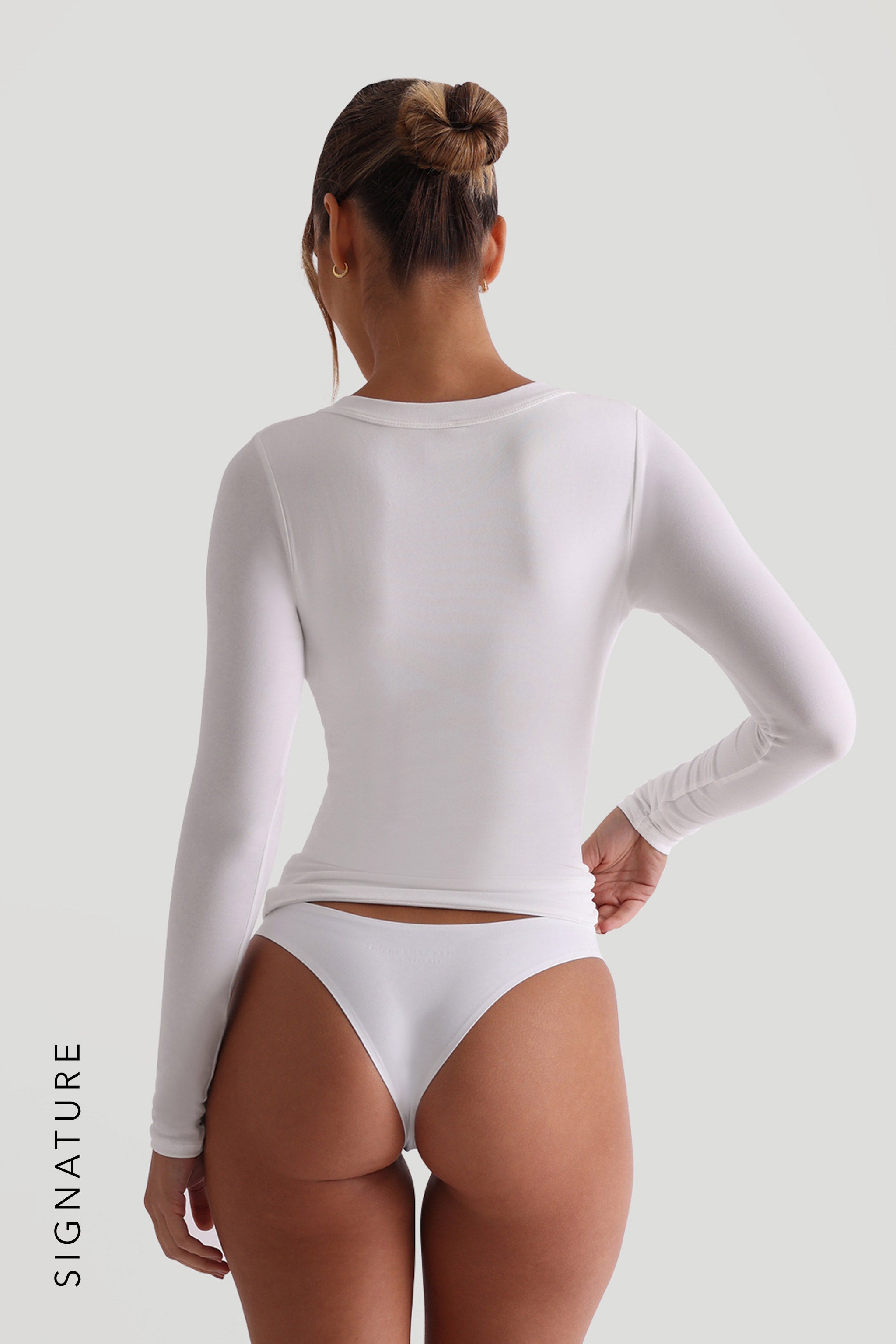 Das V -Shape Langarm-T-Shirt ist aus unserem charakteristischen Stoff gefertigt verfügt über ein 2,5 cm breites Band entlang des V-förmigen Ausschnitts, das allen Brustgrößen schmeichelt und Halt gibt.