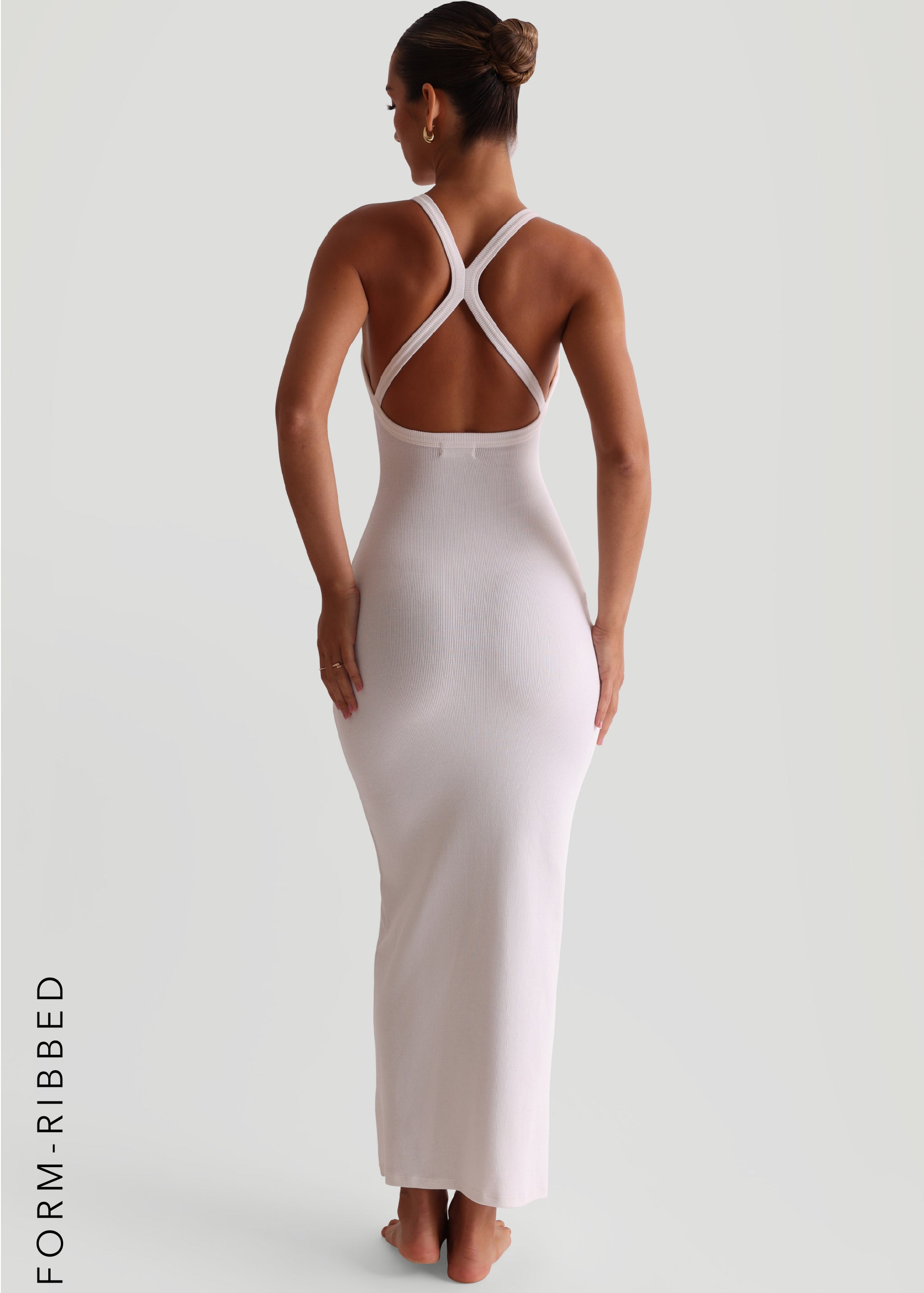 FORM-RIBBED PLUNGE SPLIT-BACK MAXI DRESS