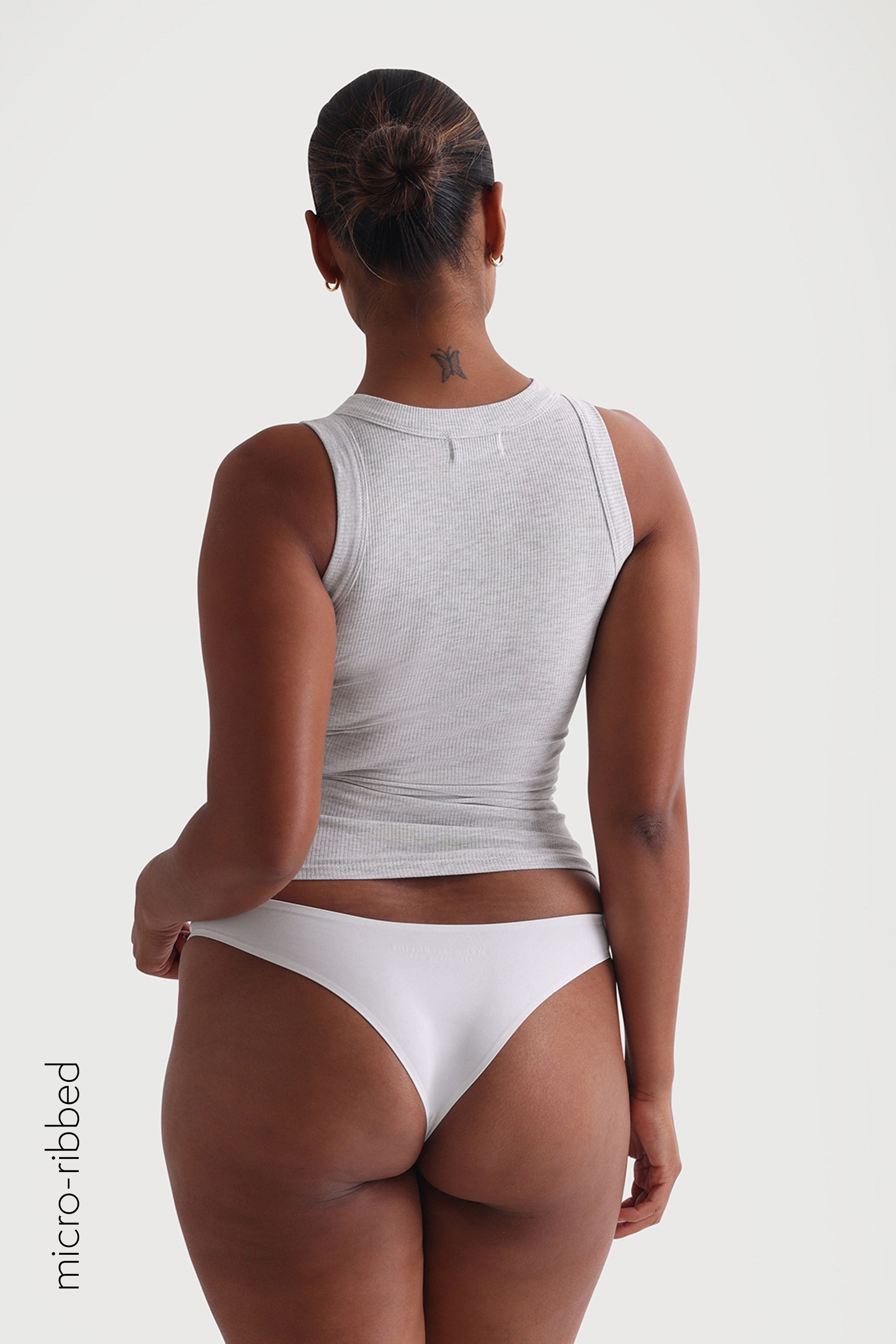 Micro-Ribbed Fabric: high stretch, low compression, slightly sheer (lighter colors)