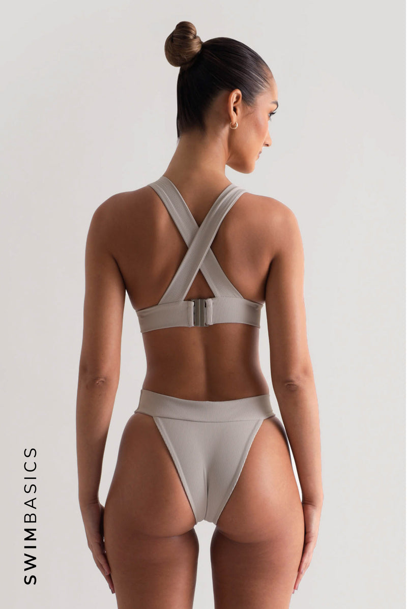 Levels Bikini Top thick and supportive cross-back bikini top with a metal clasp closure. Paired best with our Element Bikini Top.