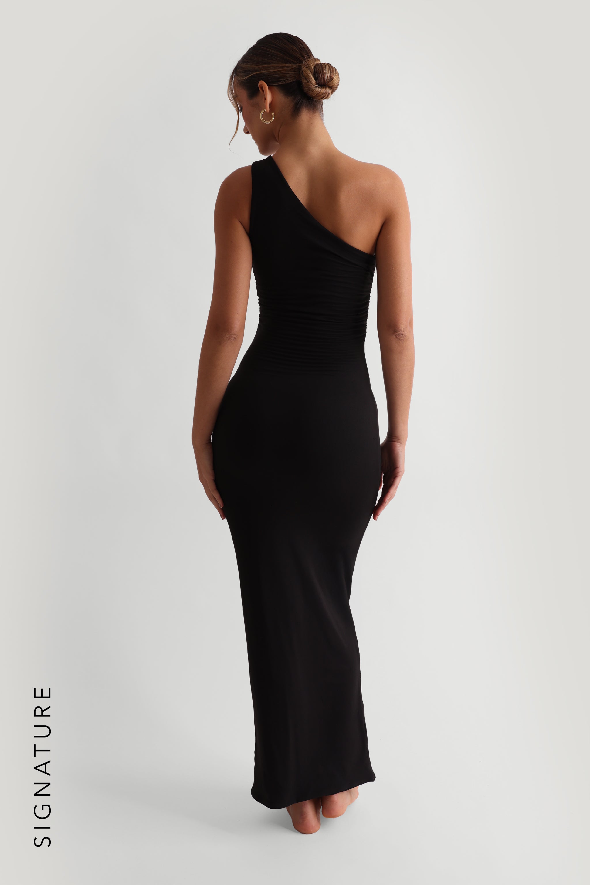THE ONE-SHOULDER RUCHED MAXI DRESS - Black THE ONE-SHOULDER RUCHED MAXI DRESS