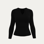The Zip-Up Long Sleeve T-Shirt, one of our best-sellers, was designed with a built-in zipper that can be adjusted to your neckline preference.