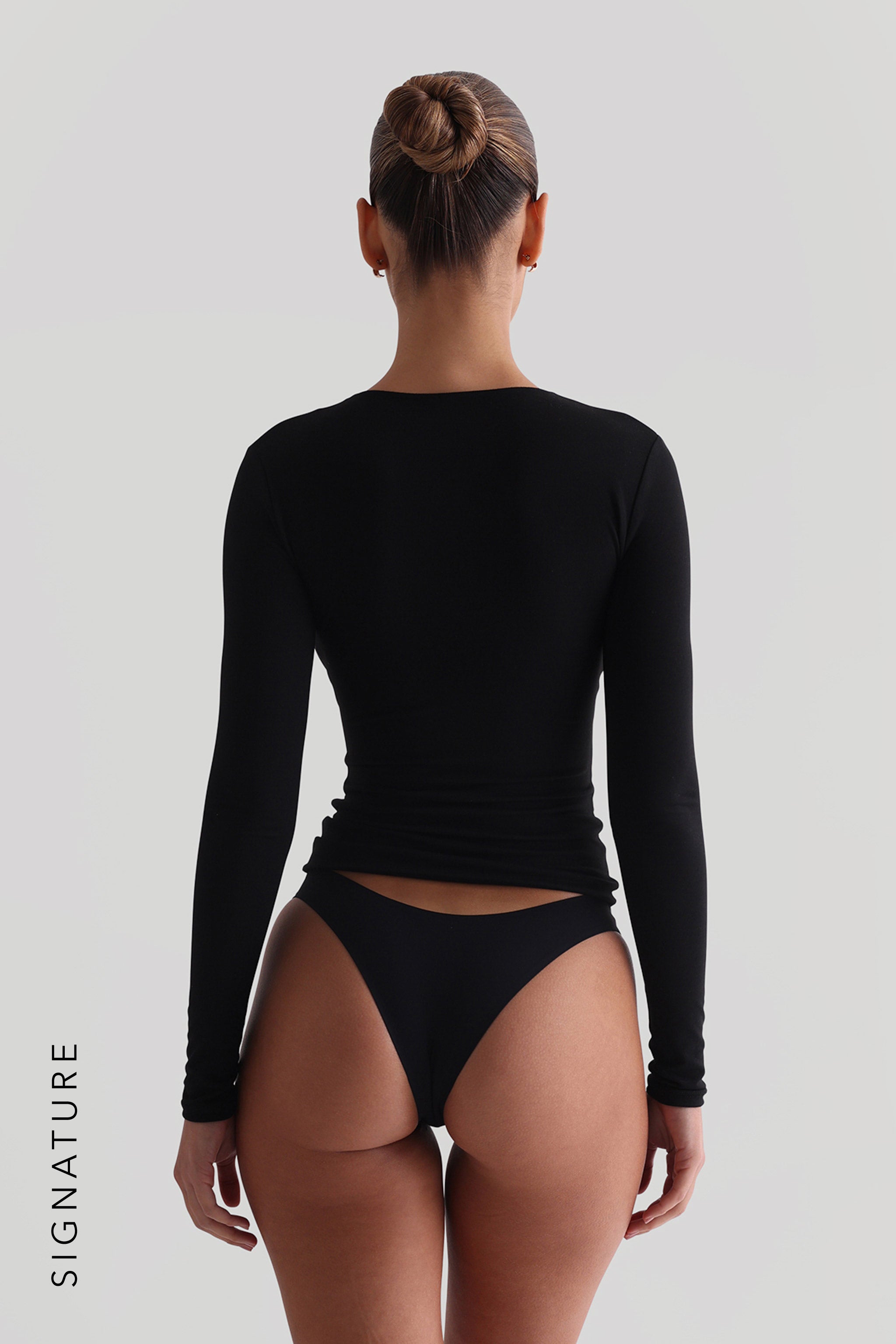 ZIP-UP LONG SLEEVE T-SHIRT - Black ZIP-UP LONG SLEEVE T-SHIRT