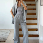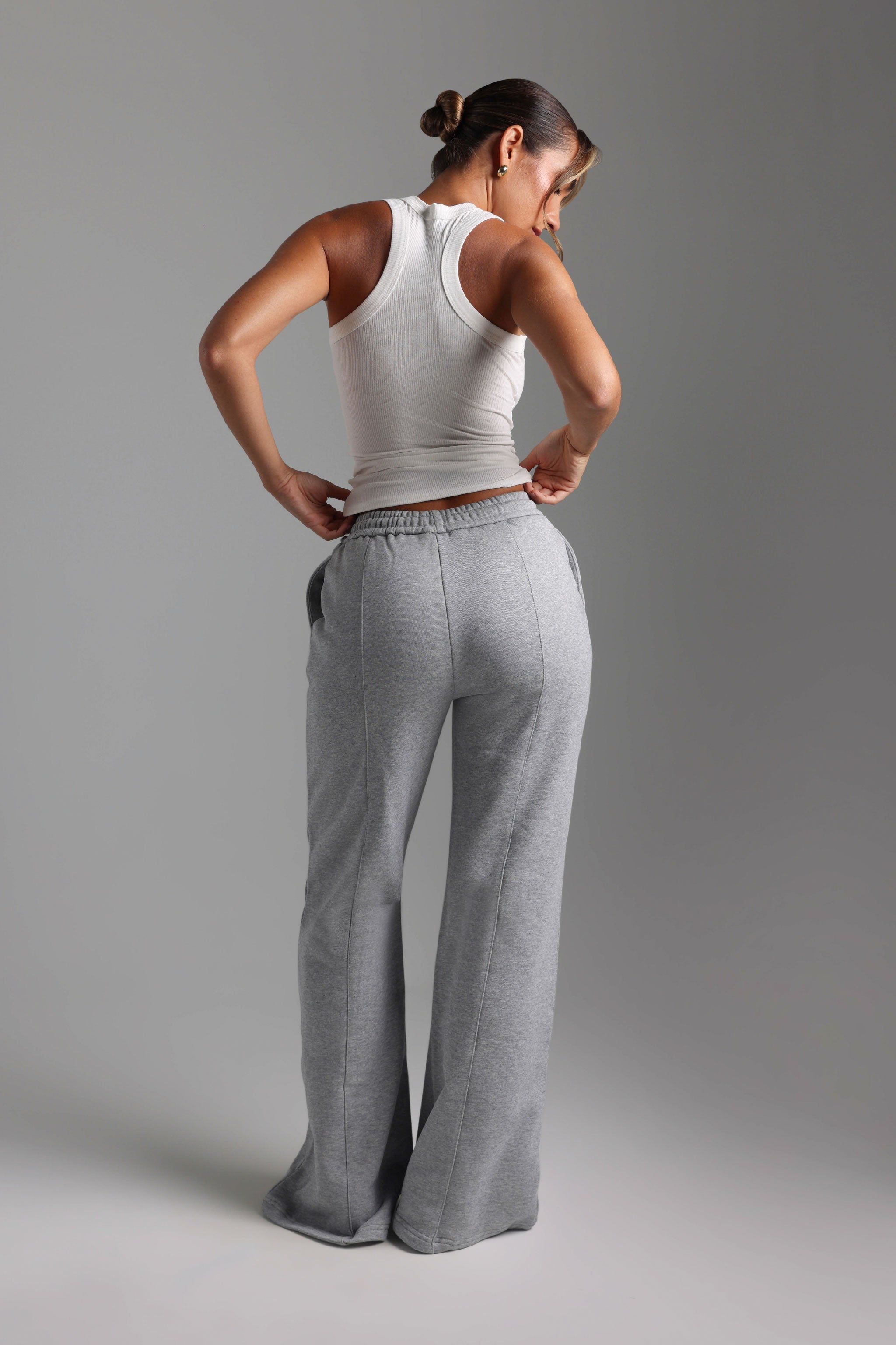 Pantalon de survêtement structuré à jambe large - Gris chiné Pantalon de survêtement structuré à jambe large