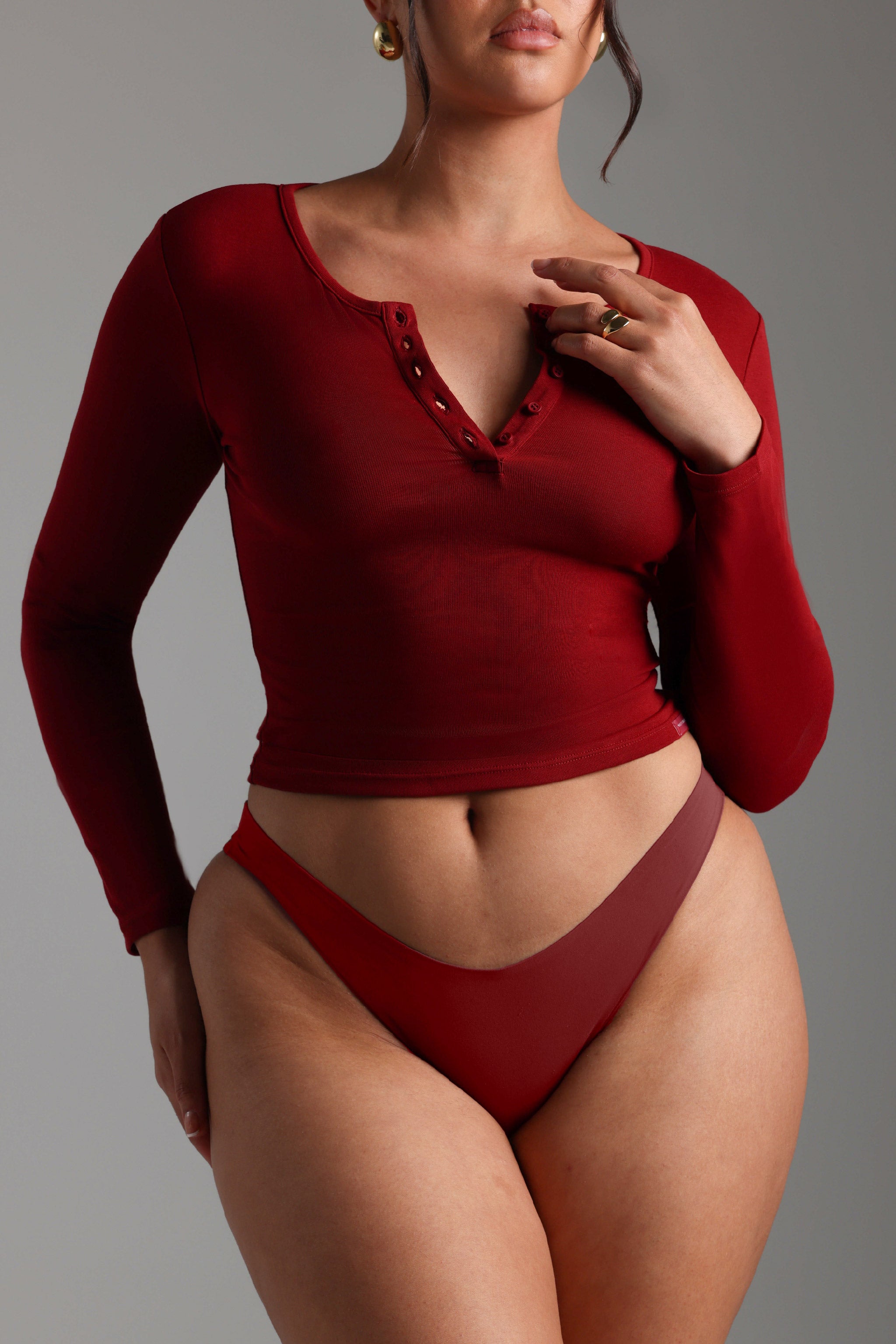 AIR-SLEEP HENLEY LONG SLEEVE TOP - MERLOT AIR-SLEEP HENLEY LONG SLEEVE TOP