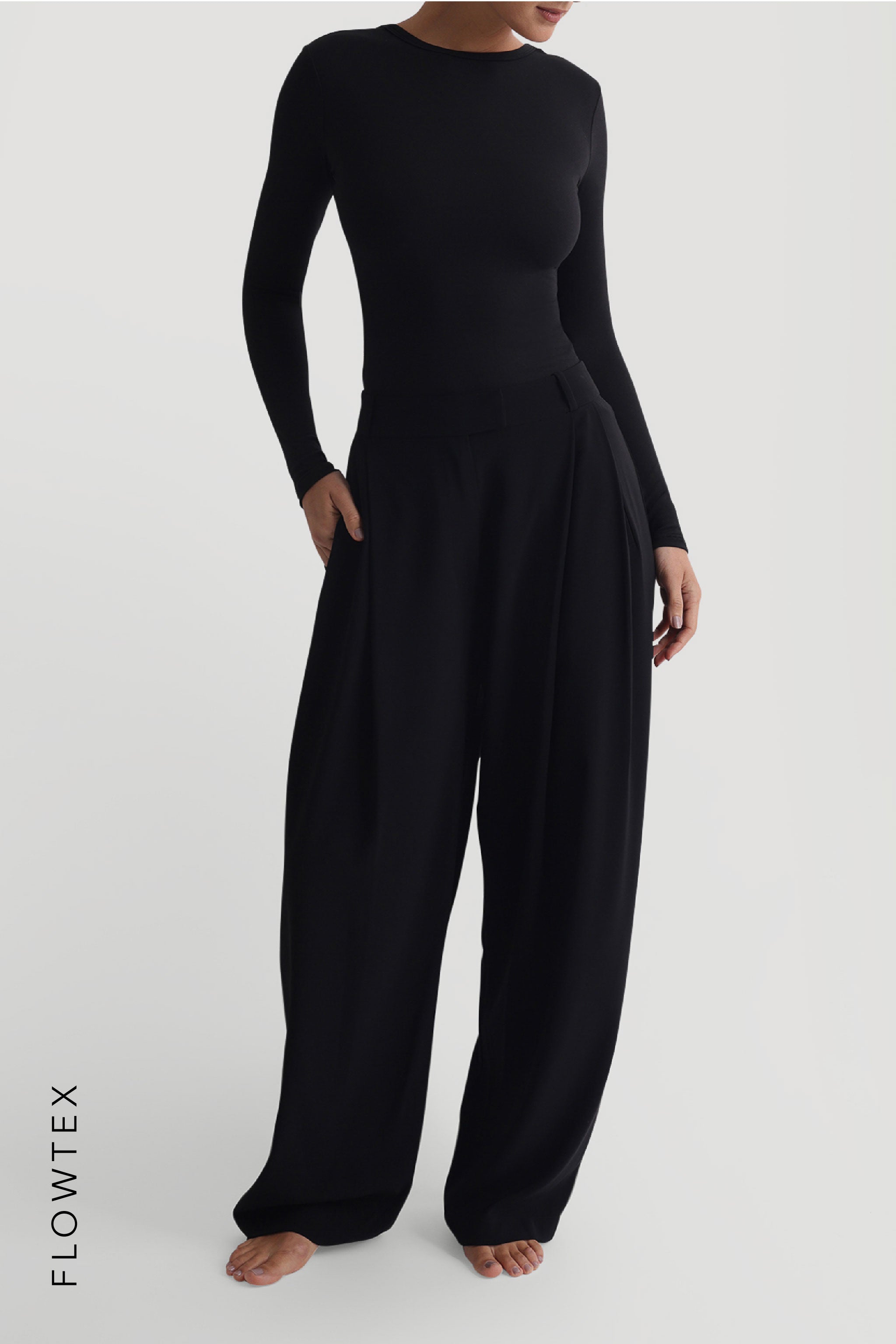 Flowtex Fabric: no stretch, no compression, slightly sheer (lighter colors)