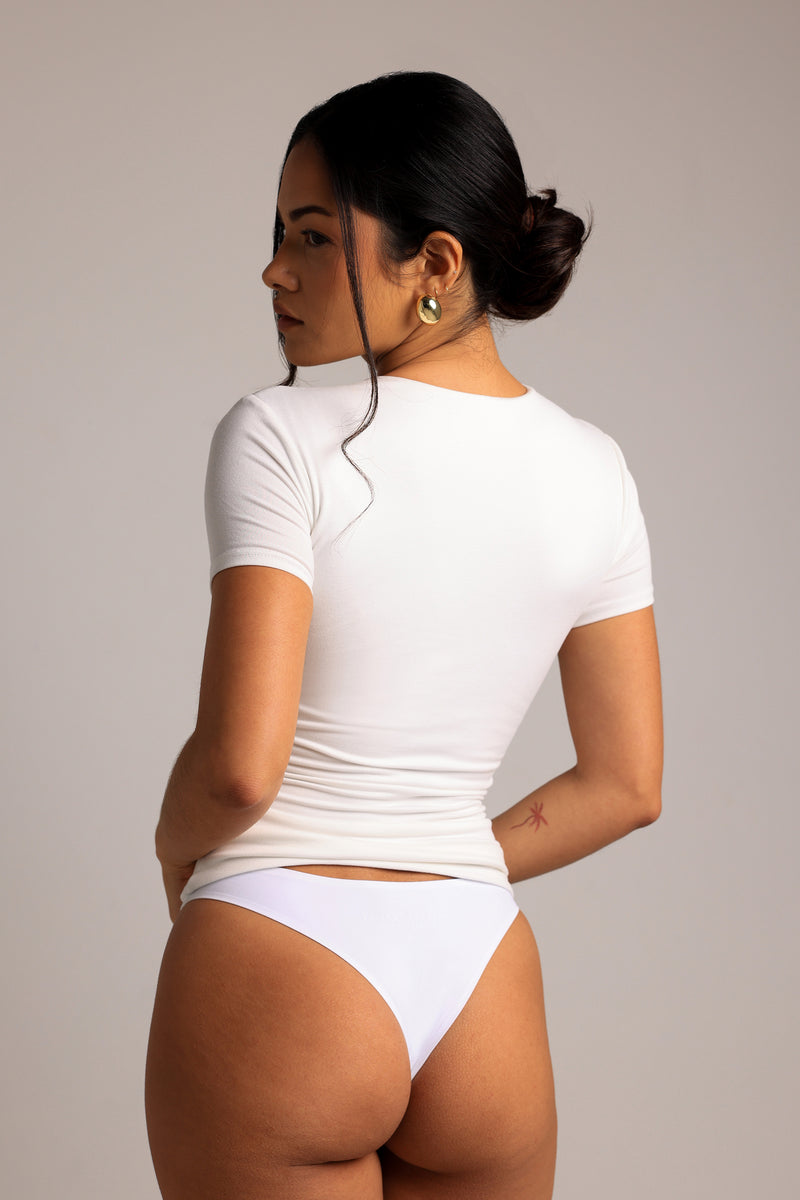 The Mist Short Sleeve T-Shirt is our all-time best-selling essential, made to be the piece you reach for again and again. Crafted from our Matte-Mist Fabric, it feels buttery-soft against the skin with a refined, waist-snatching silhouette that naturally flatters your shape. Its single-layered sleeves allow for added breathability, keeping you comfortable through warmer days. Designed with a carefully balanced torso length, it sits exactly where it should, flattering the waist without feeling too short or too long.