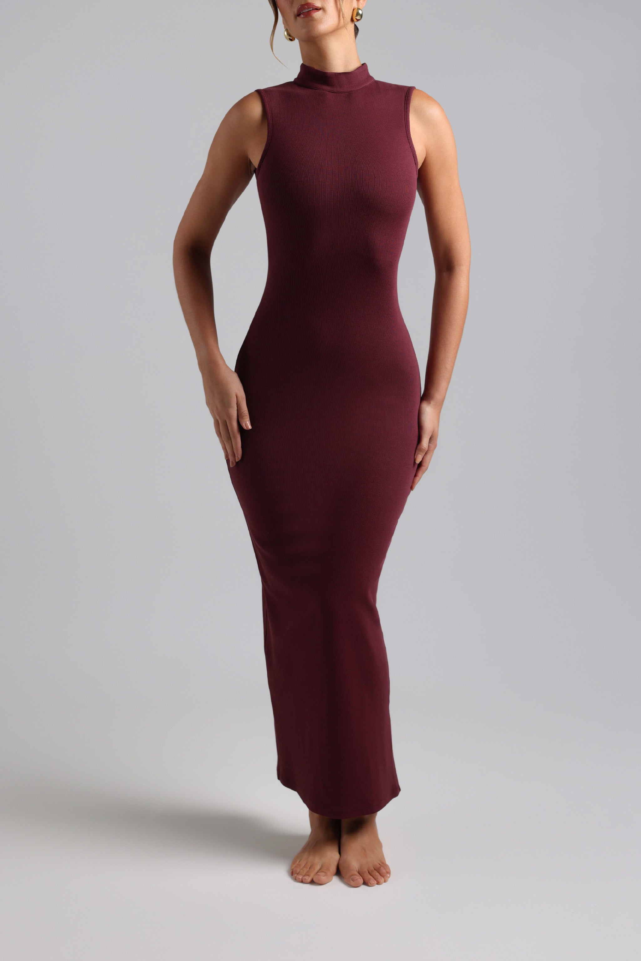 SLEEVELESS MOCK NECK MAXI DRESS - Black Cherry SLEEVELESS MOCK NECK MAXI DRESS