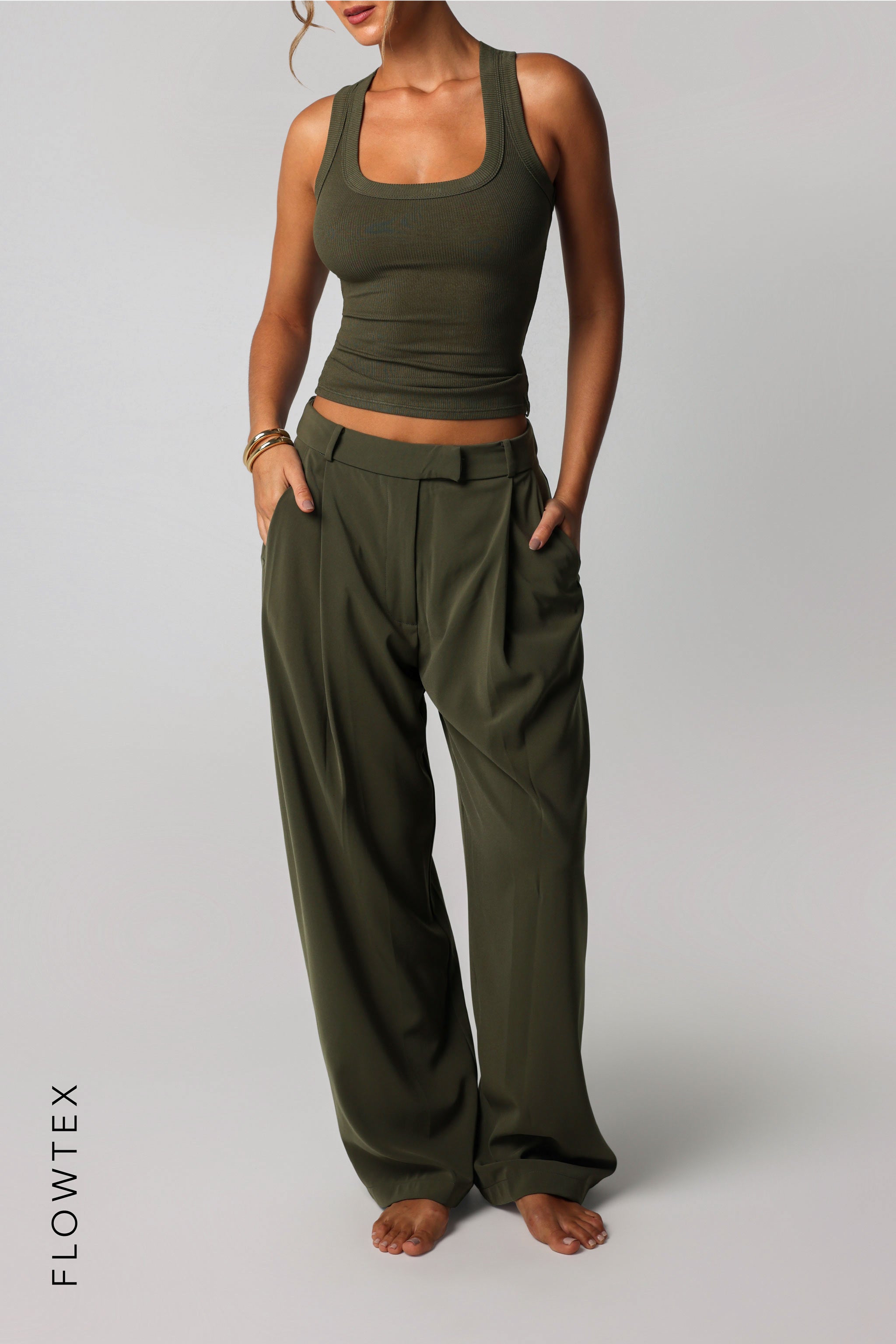T-SHAPE MICRO-RIBBED TANK TOP - Cypress T-SHAPE MICRO-RIBBED TANK TOP
