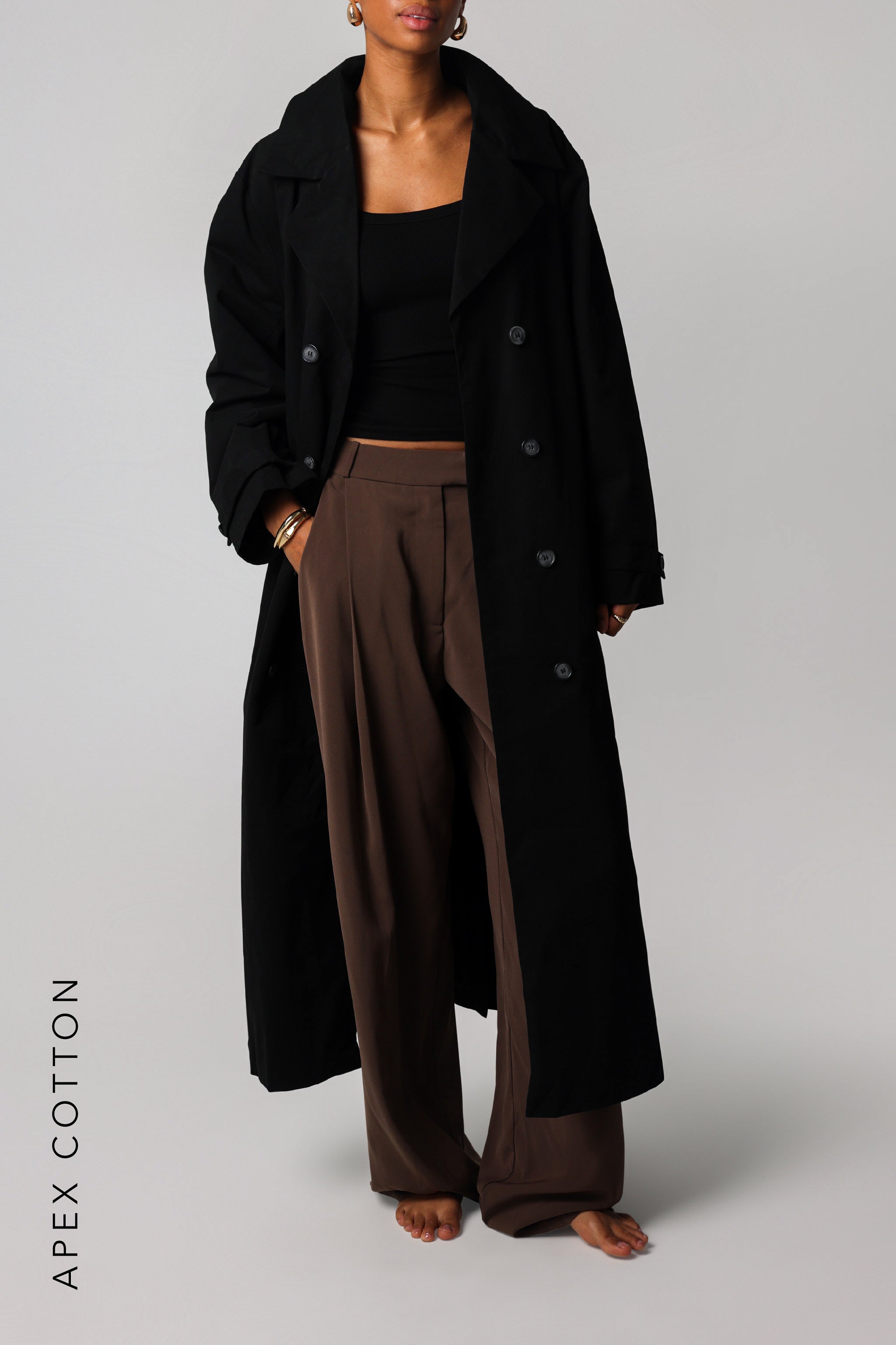 An outerwear classic, redefined. The Origin Longline Trench Coat features a clean, elongated silhouette with subtle structure and fluid movement. Designed with a relaxed fit and thoughtful tailoring, it layers effortlessly over any look – adding quiet sophistication to your everyday wardrobe. Finished with minimal detailing and a soft hand-feel, it's the kind of piece you'll return to season after season.