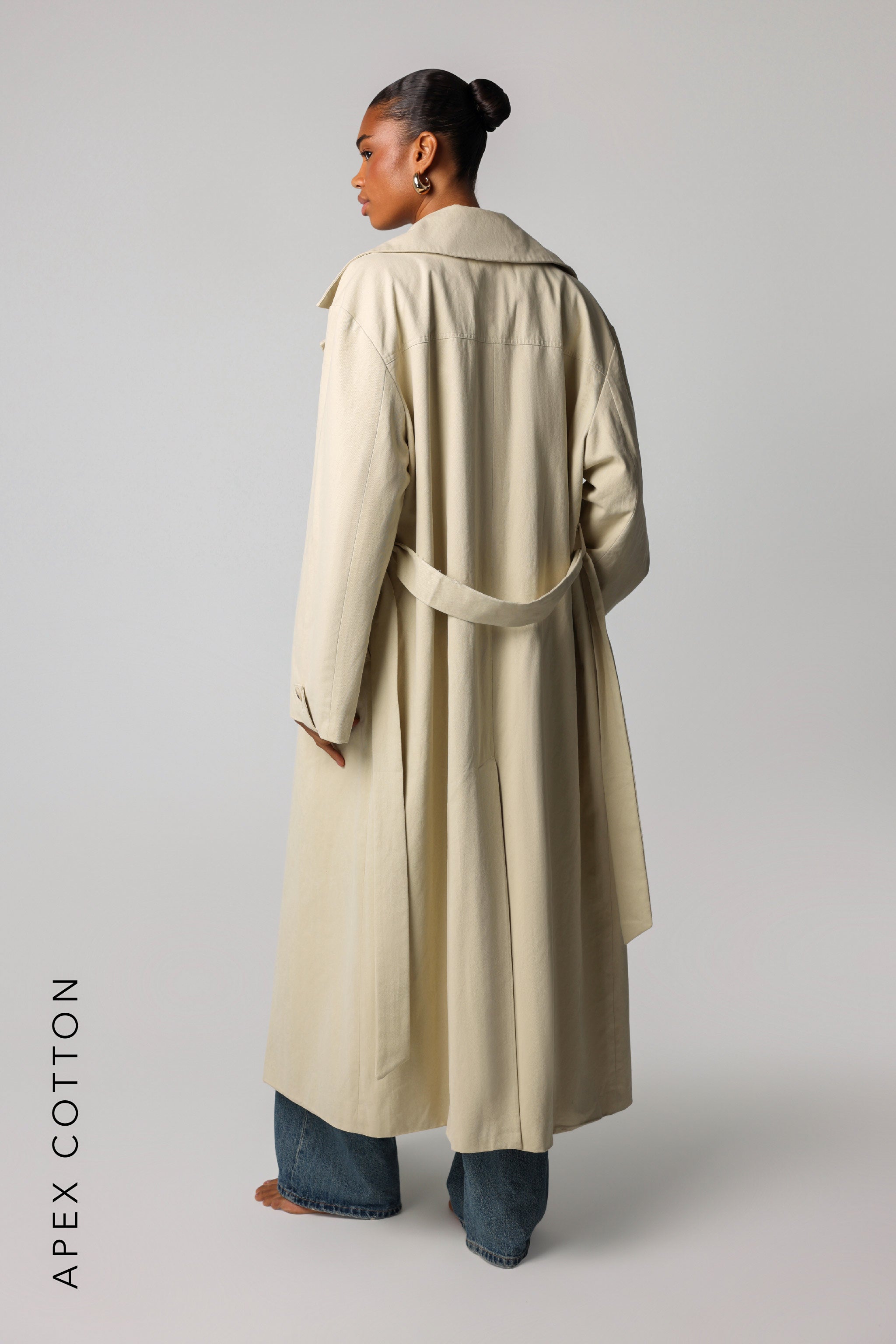 An outerwear classic, redefined. The Origin Longline Trench Coat features a clean, elongated silhouette with subtle structure and fluid movement. Designed with a relaxed fit and thoughtful tailoring, it layers effortlessly over any look – adding quiet sophistication to your everyday wardrobe. Finished with minimal detailing and a soft hand-feel, it's the kind of piece you'll return to season after season.